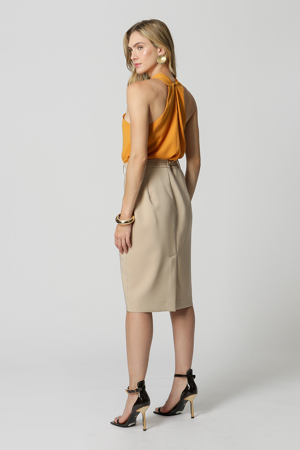 Blusa con hebilla metálica en el escote. Pieza elegante ideal para combinar looks de trabajo.