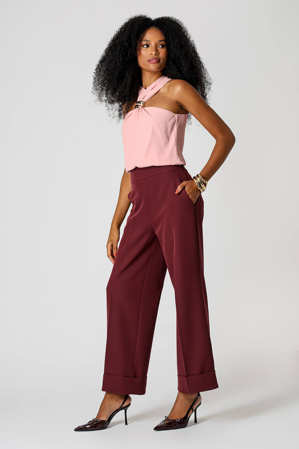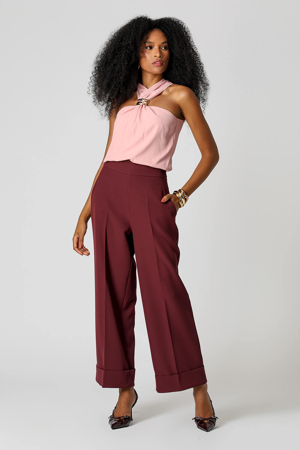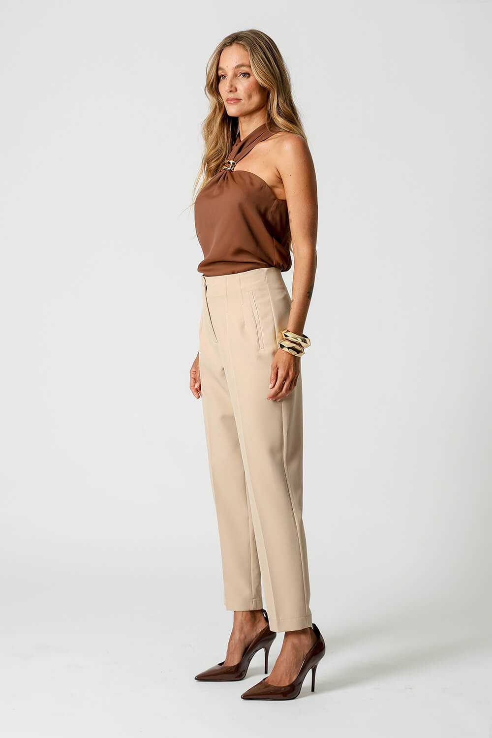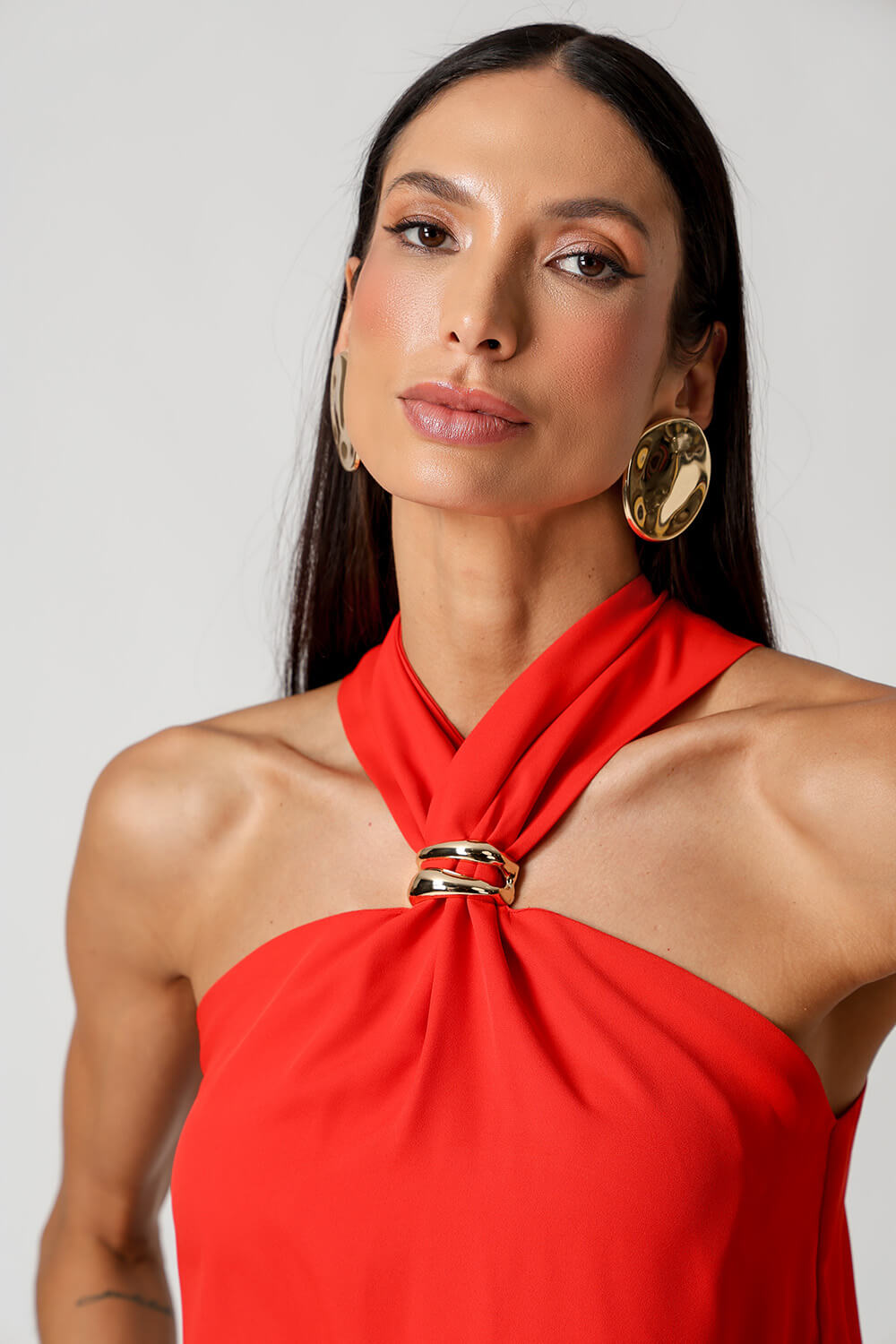 Detalhe de fivela no decote