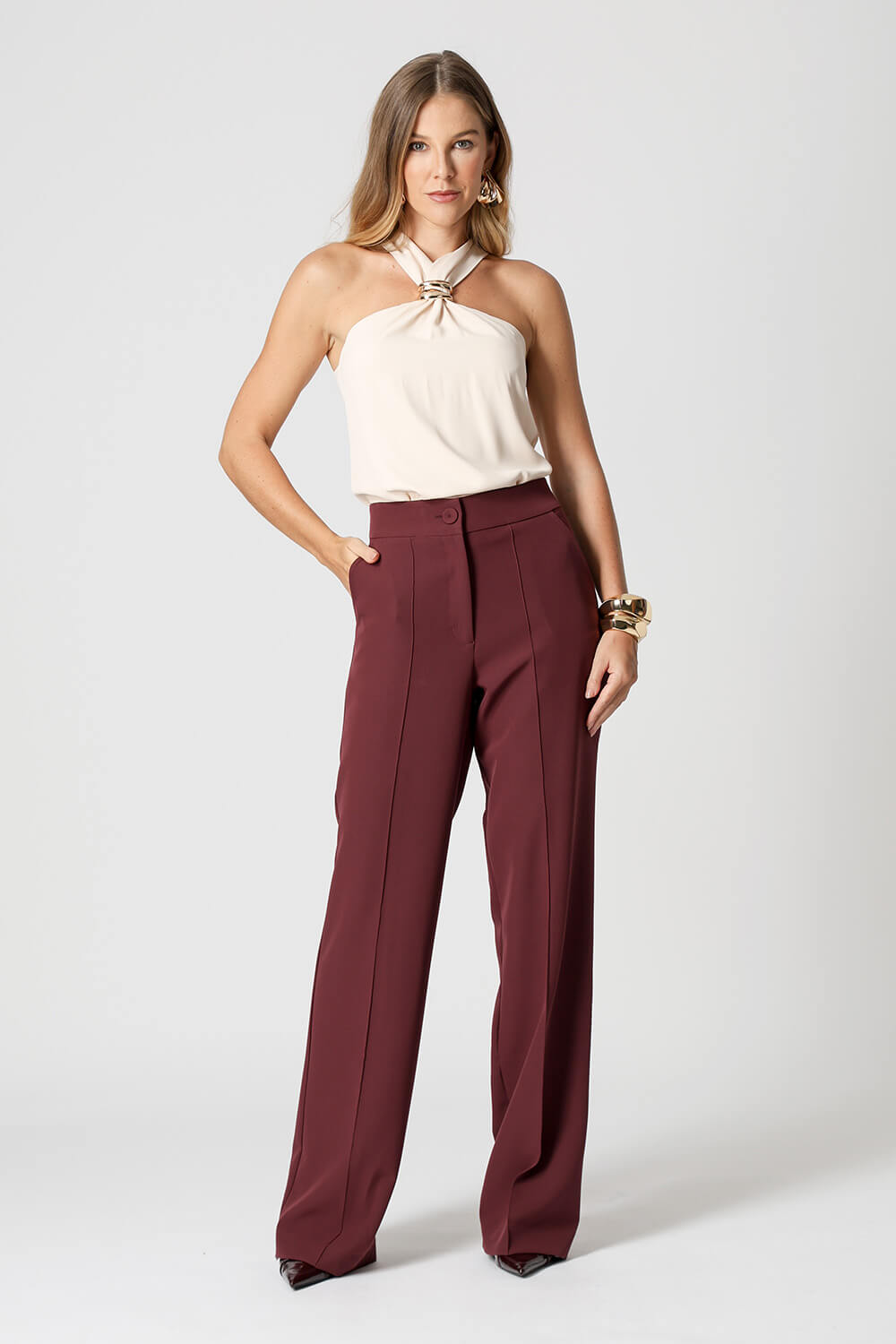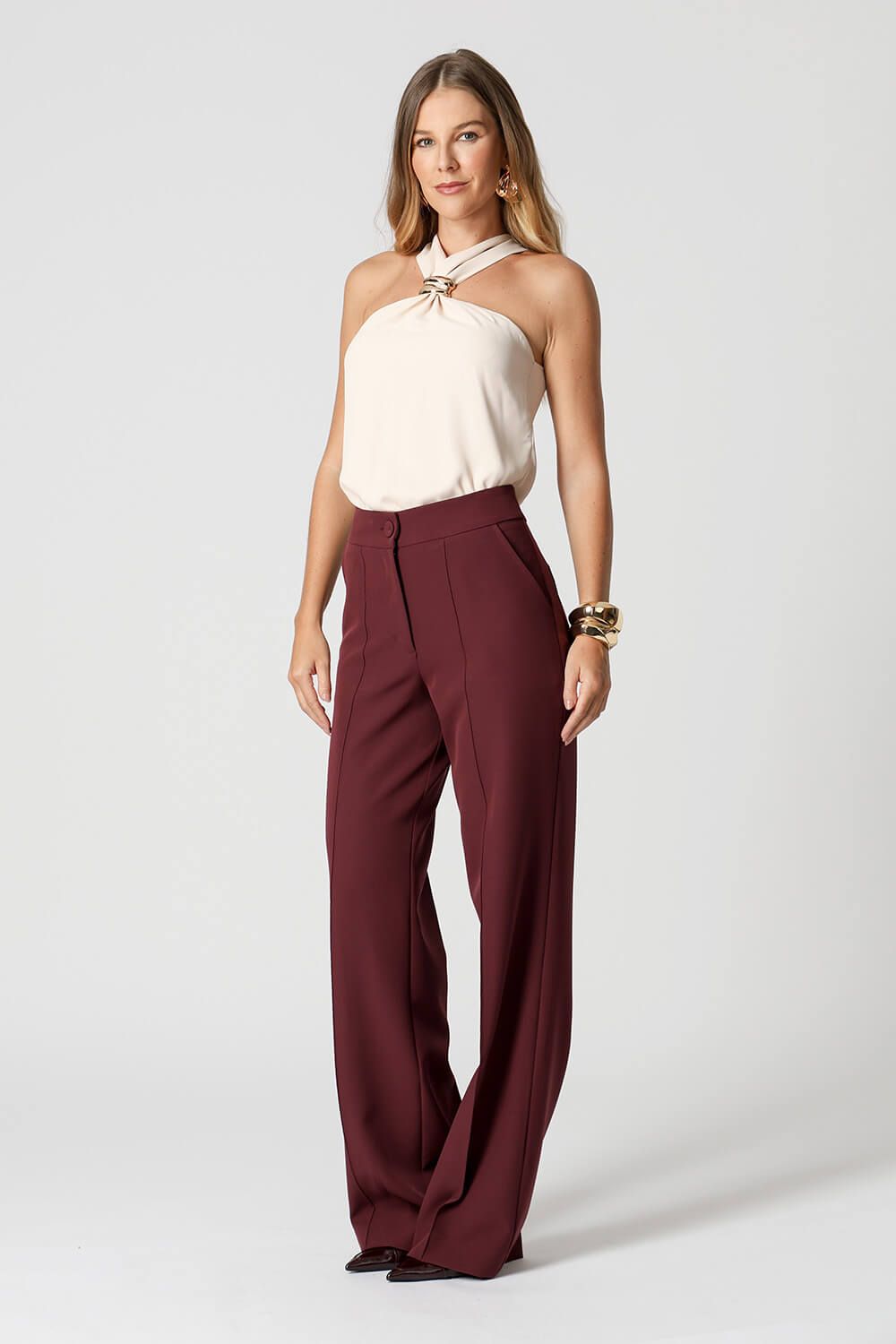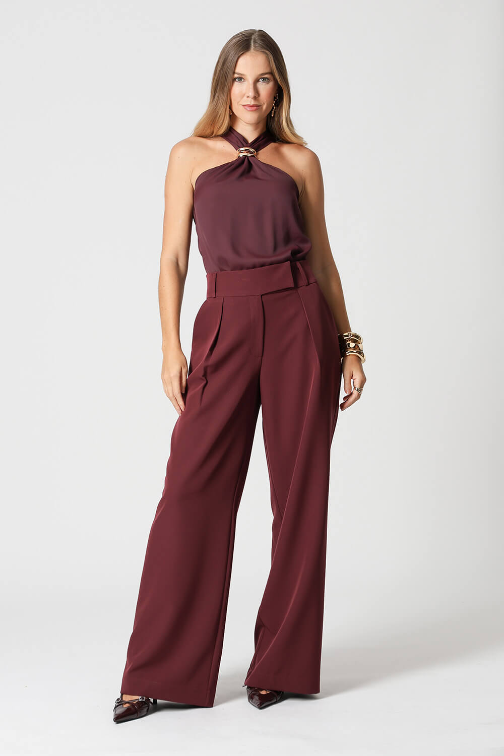 Blusa em crepe Segall com alças largas e detalhe de fivela no decote. Moderna e elegante, é perfeita para compor looks versáteis e sofisticados.
