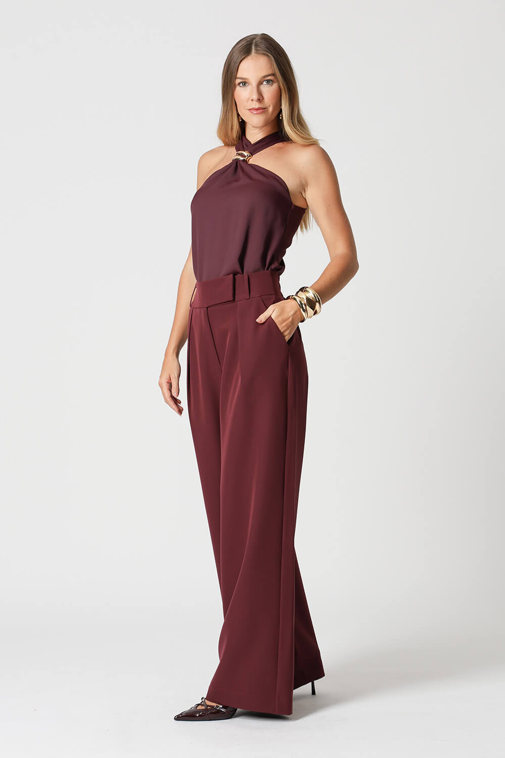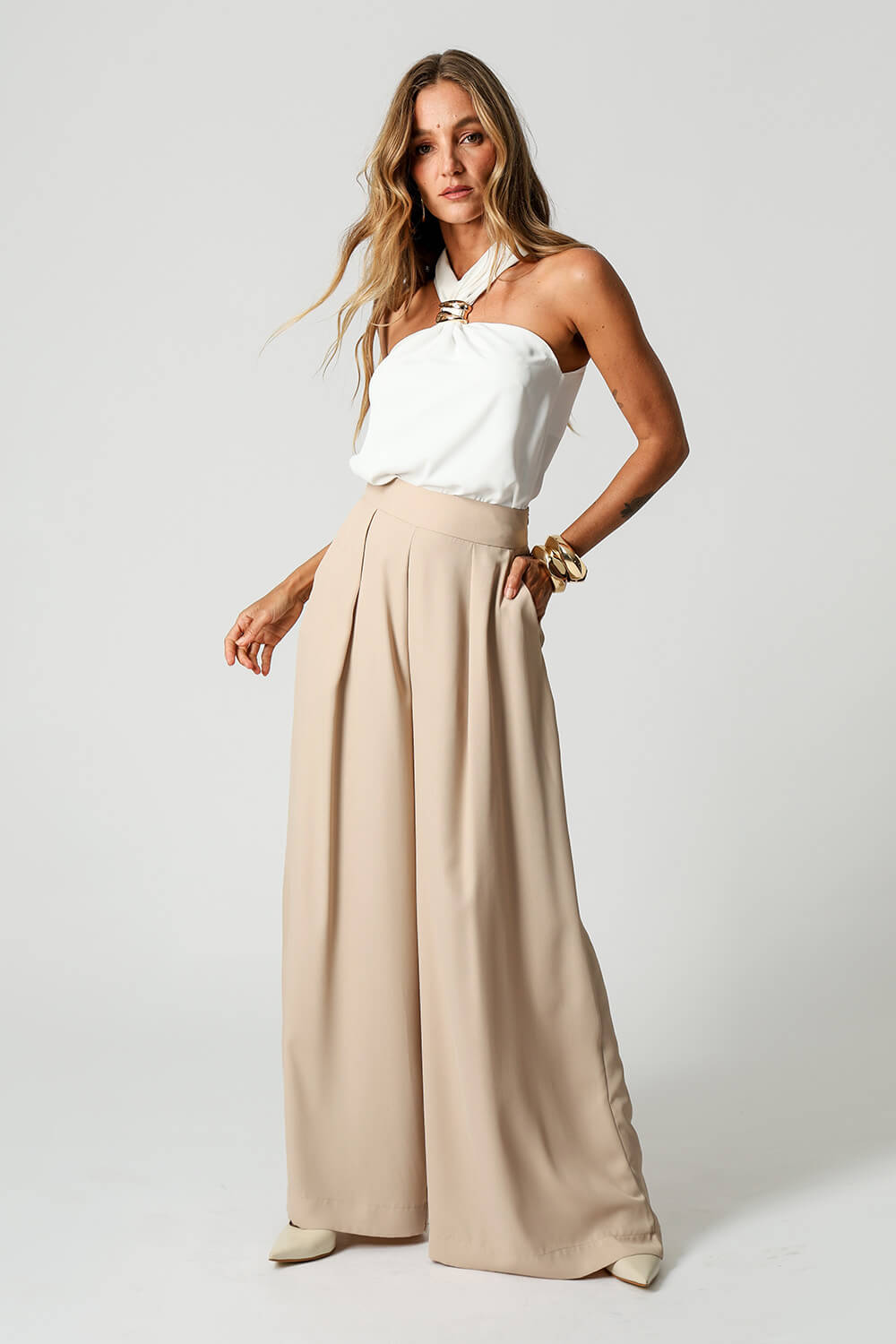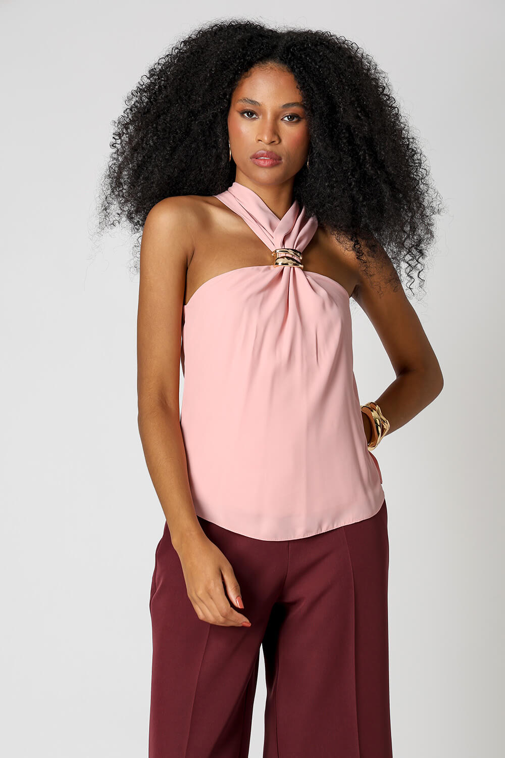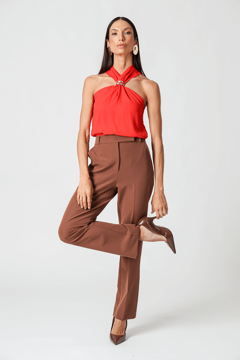 Blusa em crepe Segall com alças largas e detalhe de fivela no decote. Moderna e elegante, é perfeita para compor looks versáteis e sofisticados.
