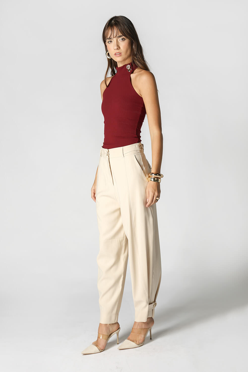 Pantalones minimalistas de pierna ancha - BLANCO ROJO Pantalones minimalistas de pierna ancha - BLANCO ROJO