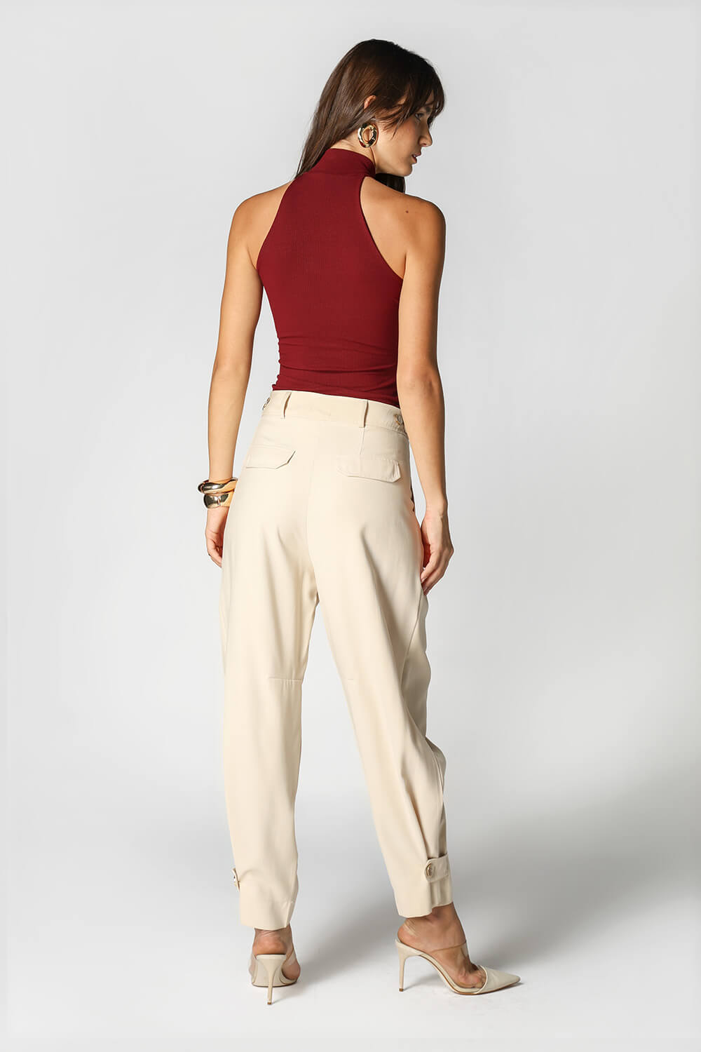 Blusa de cuello alto, el sofisticado diseño se resalta con los distintivos botones dorados, que añaden un toque de encanto y exclusividad a la pieza. Perfecto para crear looks versátiles, desde casuales hasta refinados, con mucho estilo.