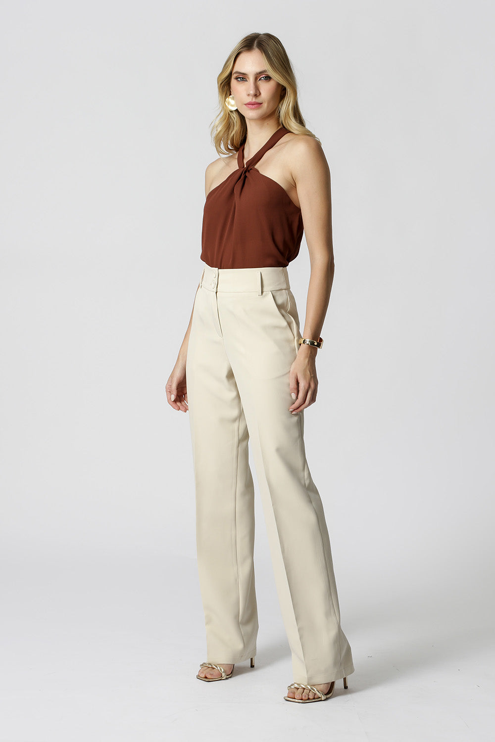 Blusa con cuello cruzado - MARRÓN