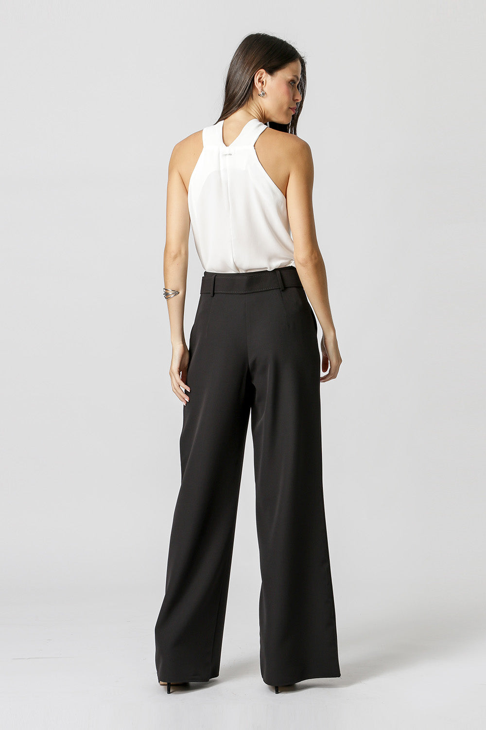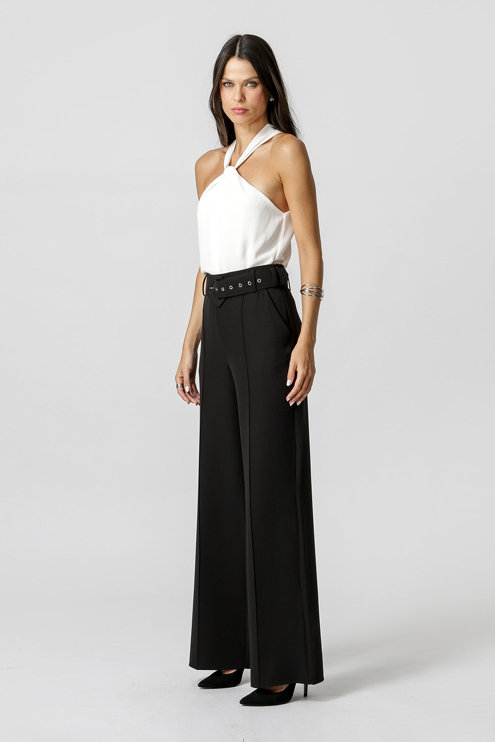 Pantalones minimalistas de pierna ancha - BLANCO ROJO Pantalones minimalistas de pierna ancha - BLANCO ROJO