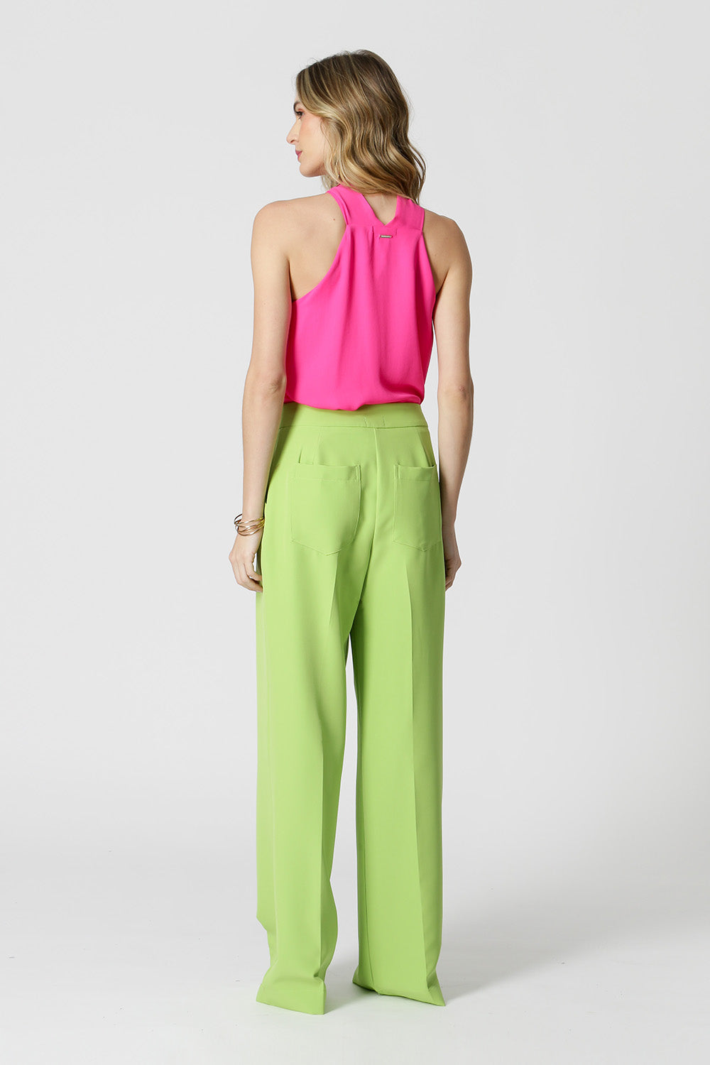 Blusa con sisa americana y un encantador escote cruzado. Una pieza realizada en crepe fluido para diferentes looks.