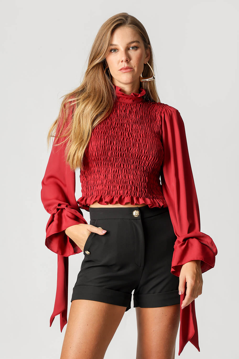 Delicada y llena de encanto, esta blusa fluida de crepé tiene elástico en todo el cuerpo, lo que garantiza un ajuste cómodo. Un toque delicado para looks elegantes y femeninos. Versátil, se puede utilizar en looks casuales o más sofisticados, según la composición.