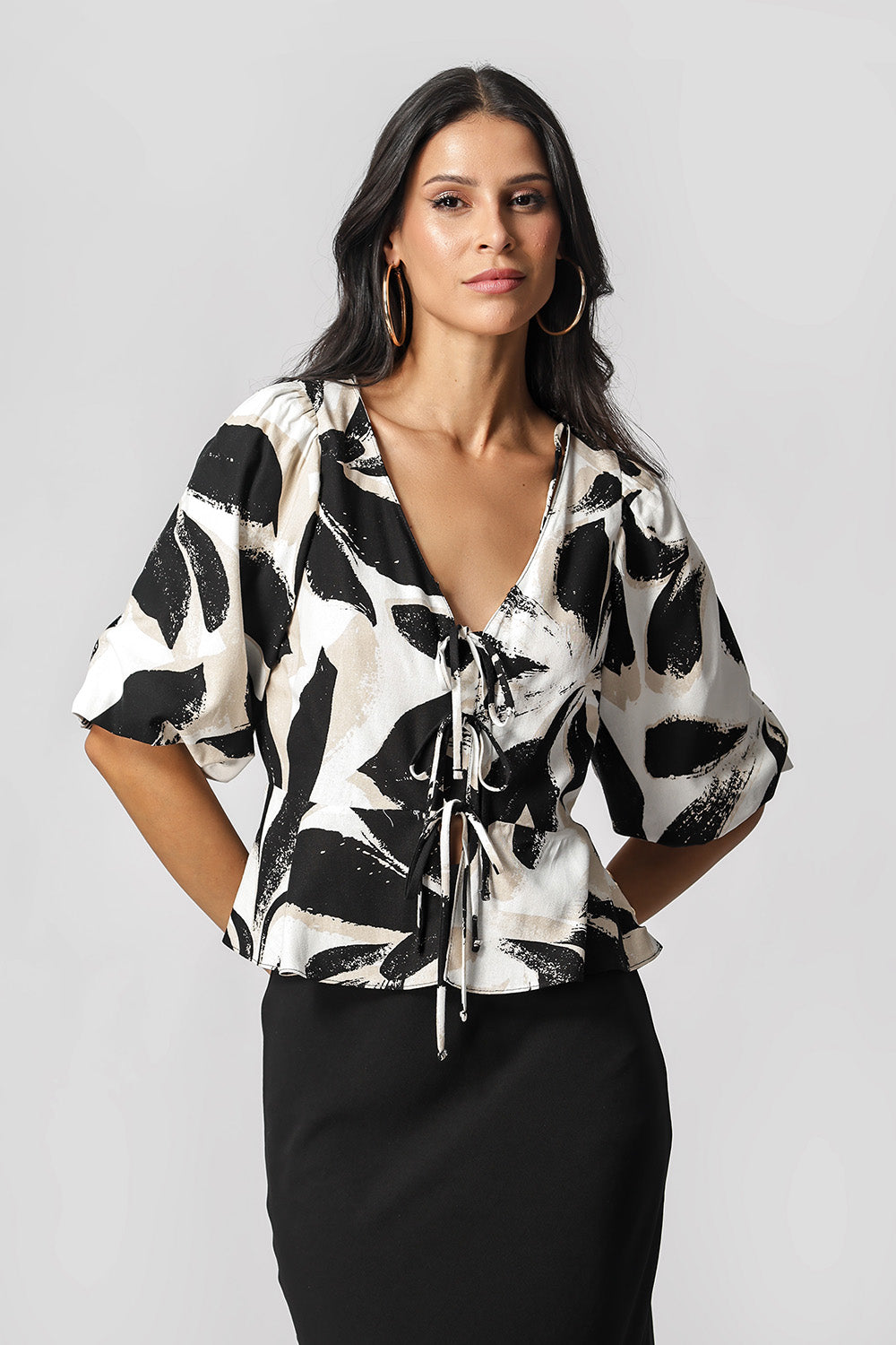 Blusa con mangas globo estampadas, se puede usar de 2 maneras, ideal para quienes buscan modelos diferentes que realcen la silueta, ¡anímate!