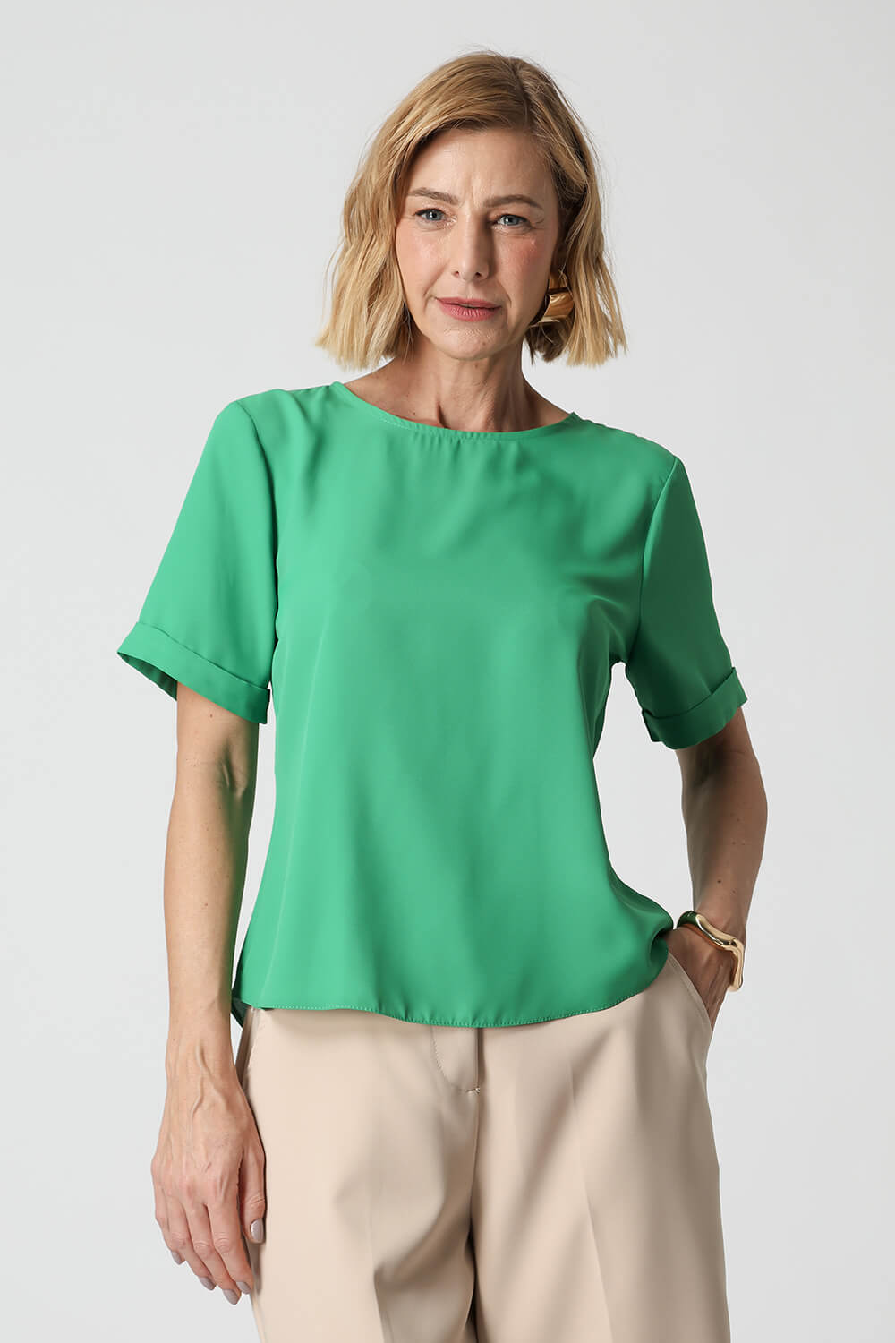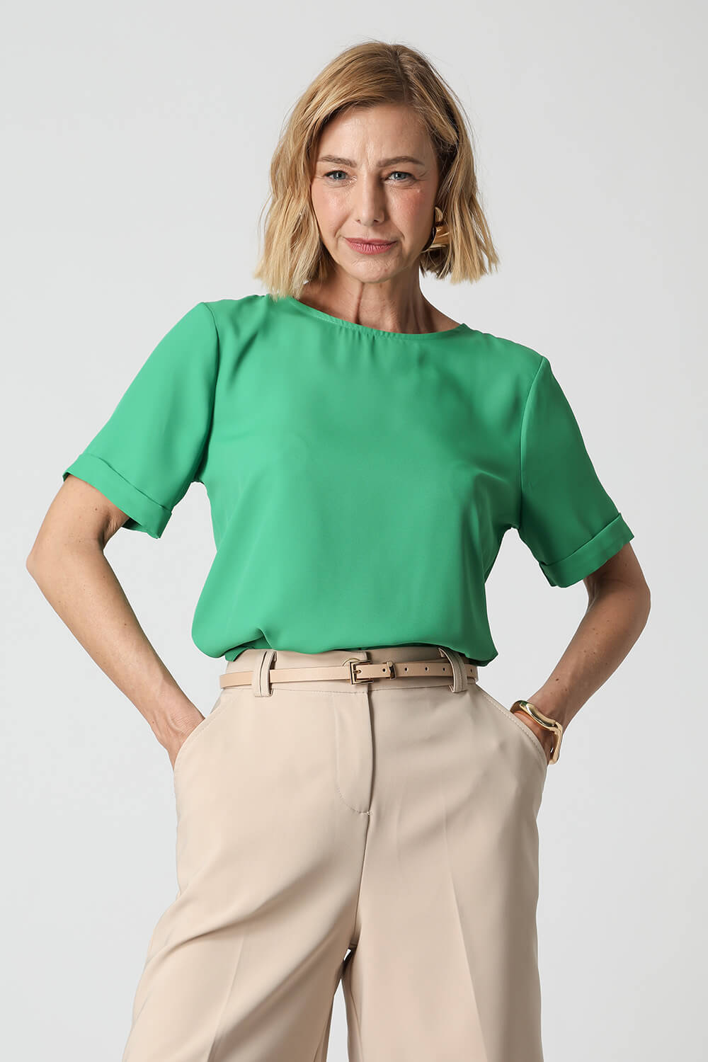 Blusa de manga corta con bajo italiano. Una pieza única que le dará un nuevo impulso a tu look laboral.