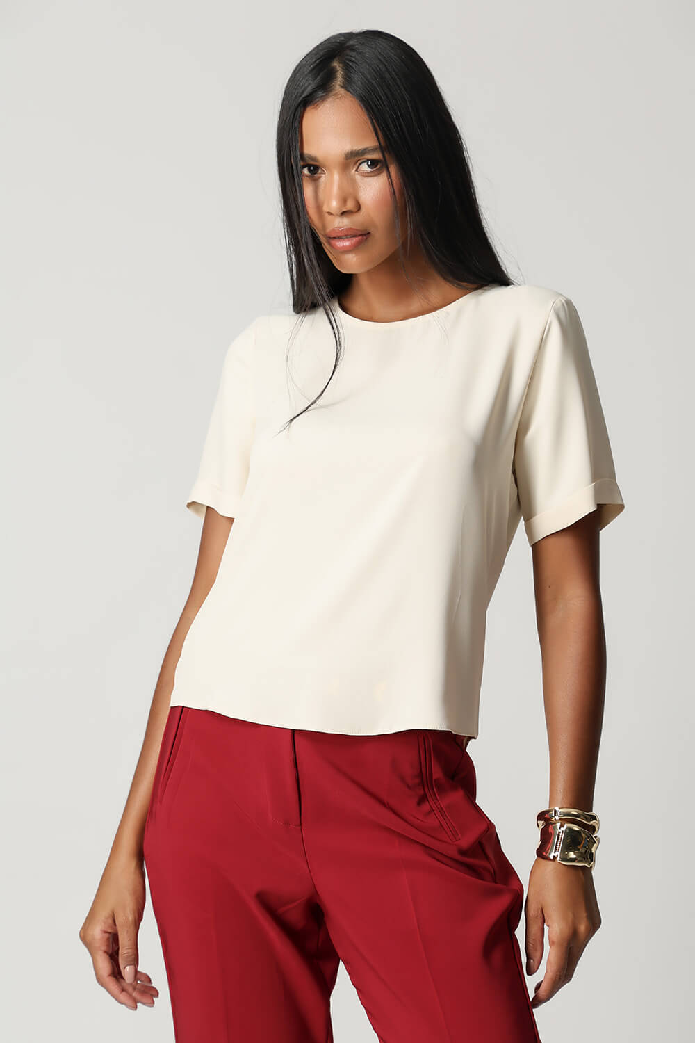 Blusa de manga corta con bajo italiano. Una pieza única que le dará un nuevo impulso a tu look laboral.