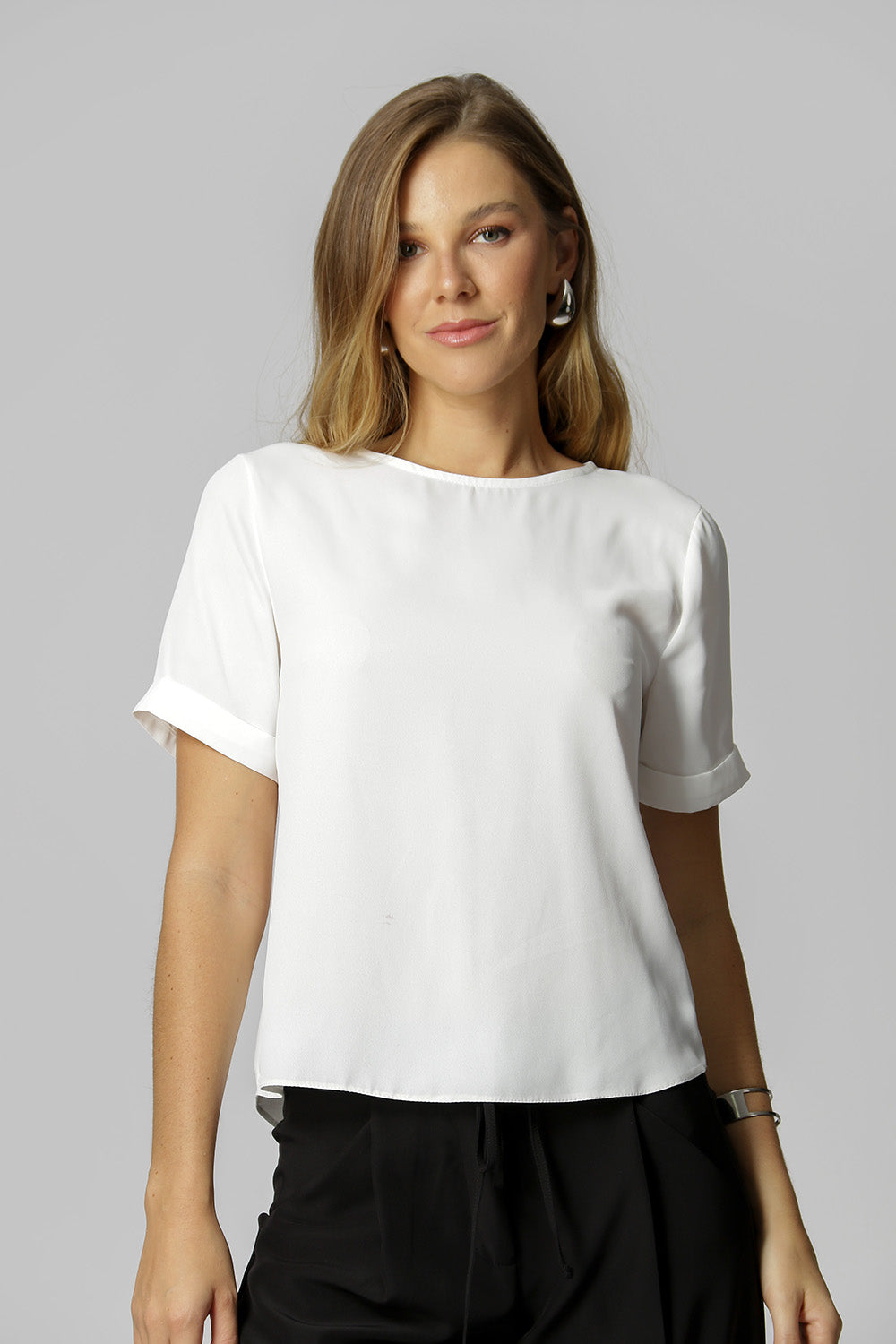 Blusa de manga corta con bajo italiano. Una pieza única que le dará un nuevo impulso a tu look laboral.