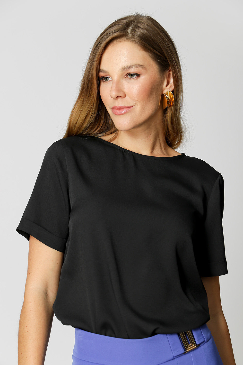 Blusa de manga corta con bajo italiano. Una pieza única que le dará un nuevo impulso a tu look laboral.