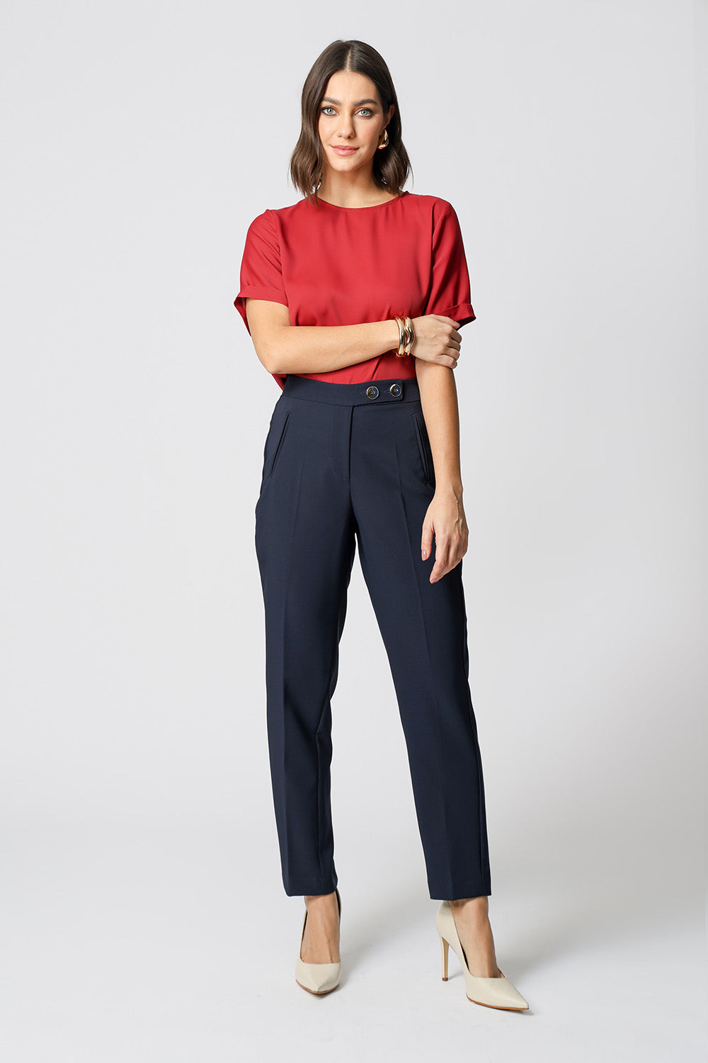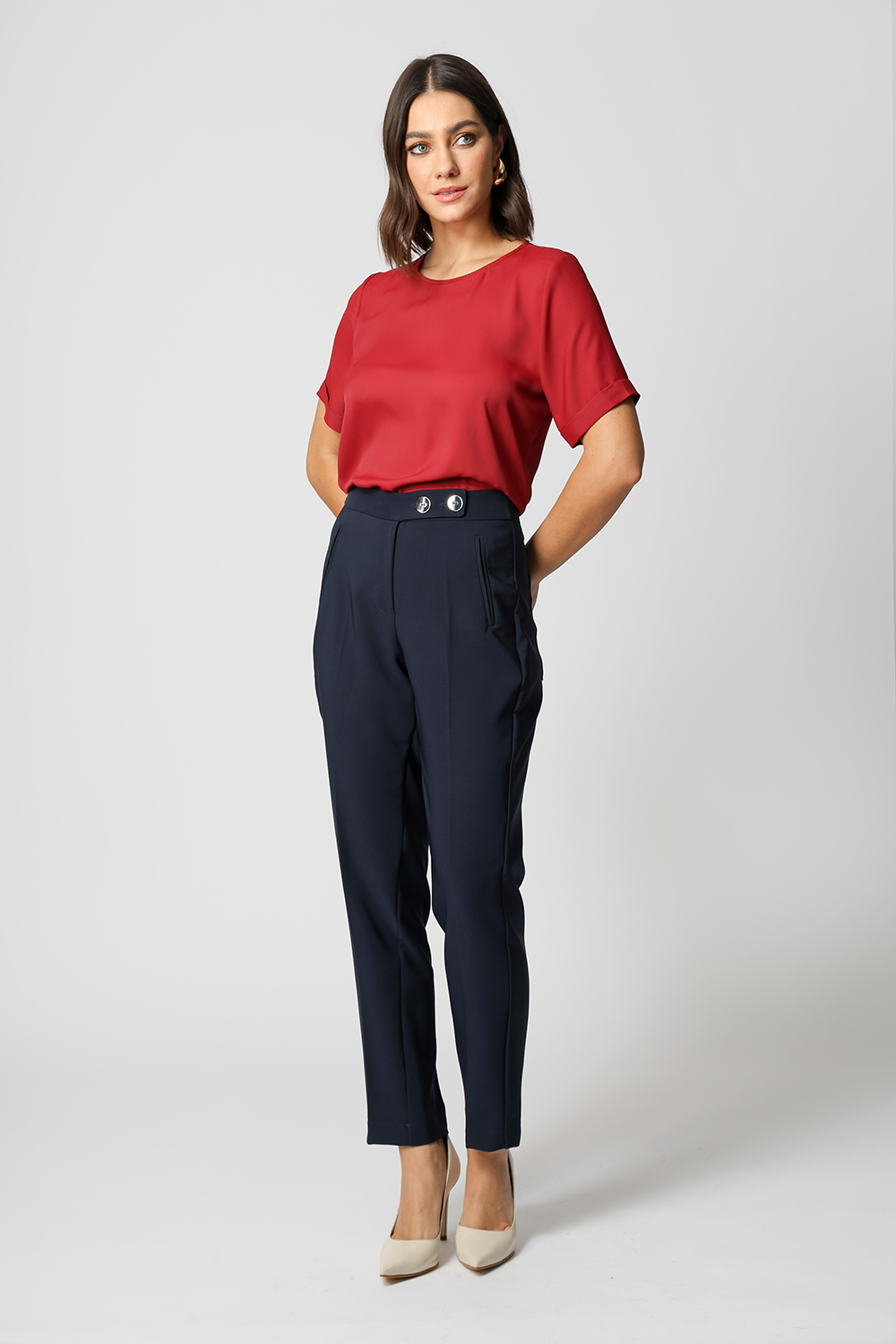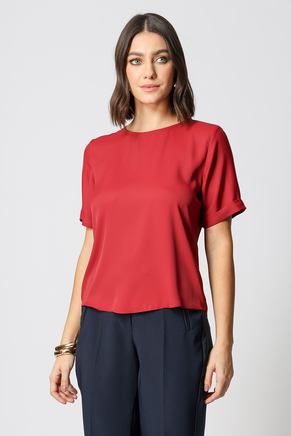 Blusa de manga corta con bajo italiano. Una pieza única que le dará un nuevo impulso a tu look laboral.