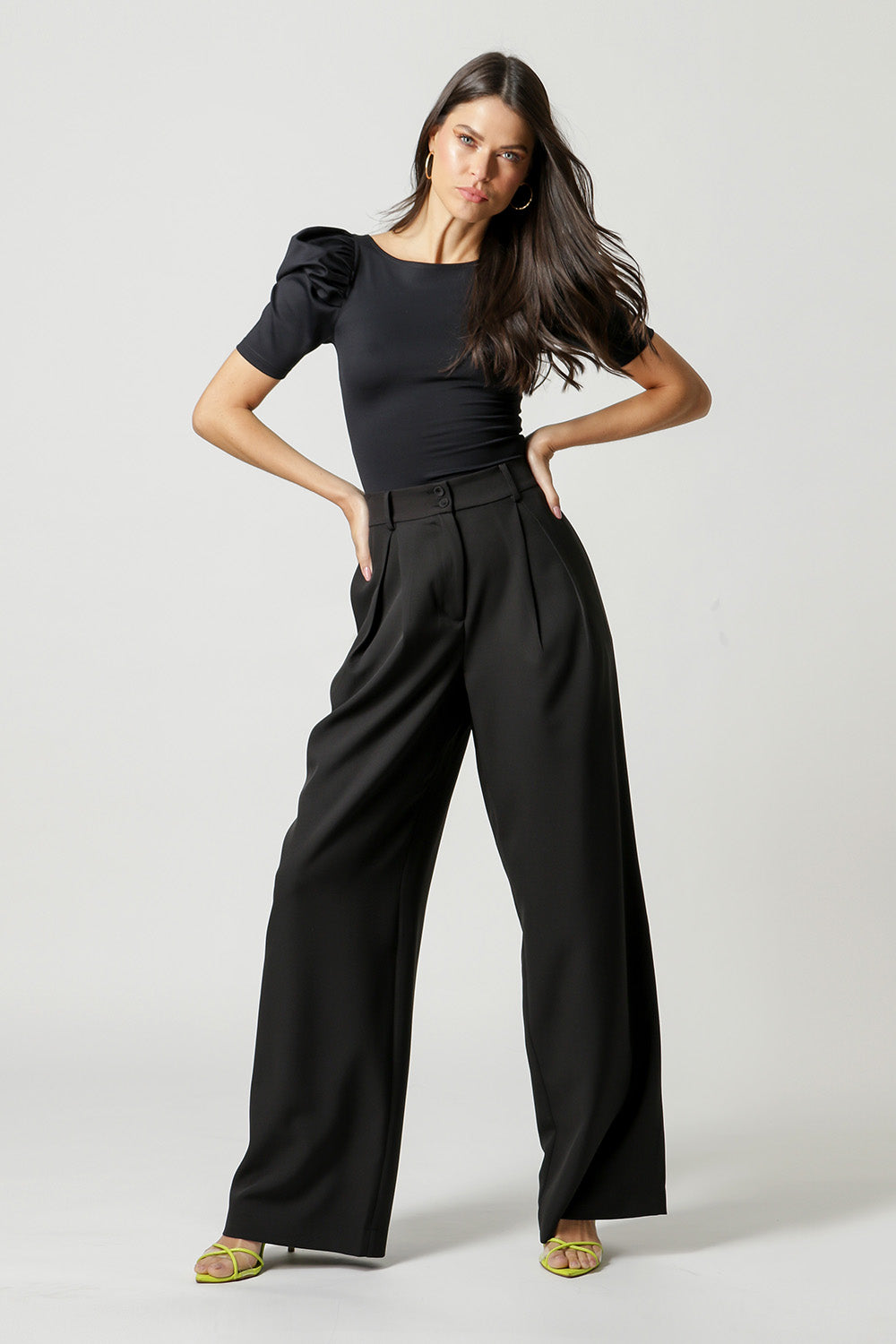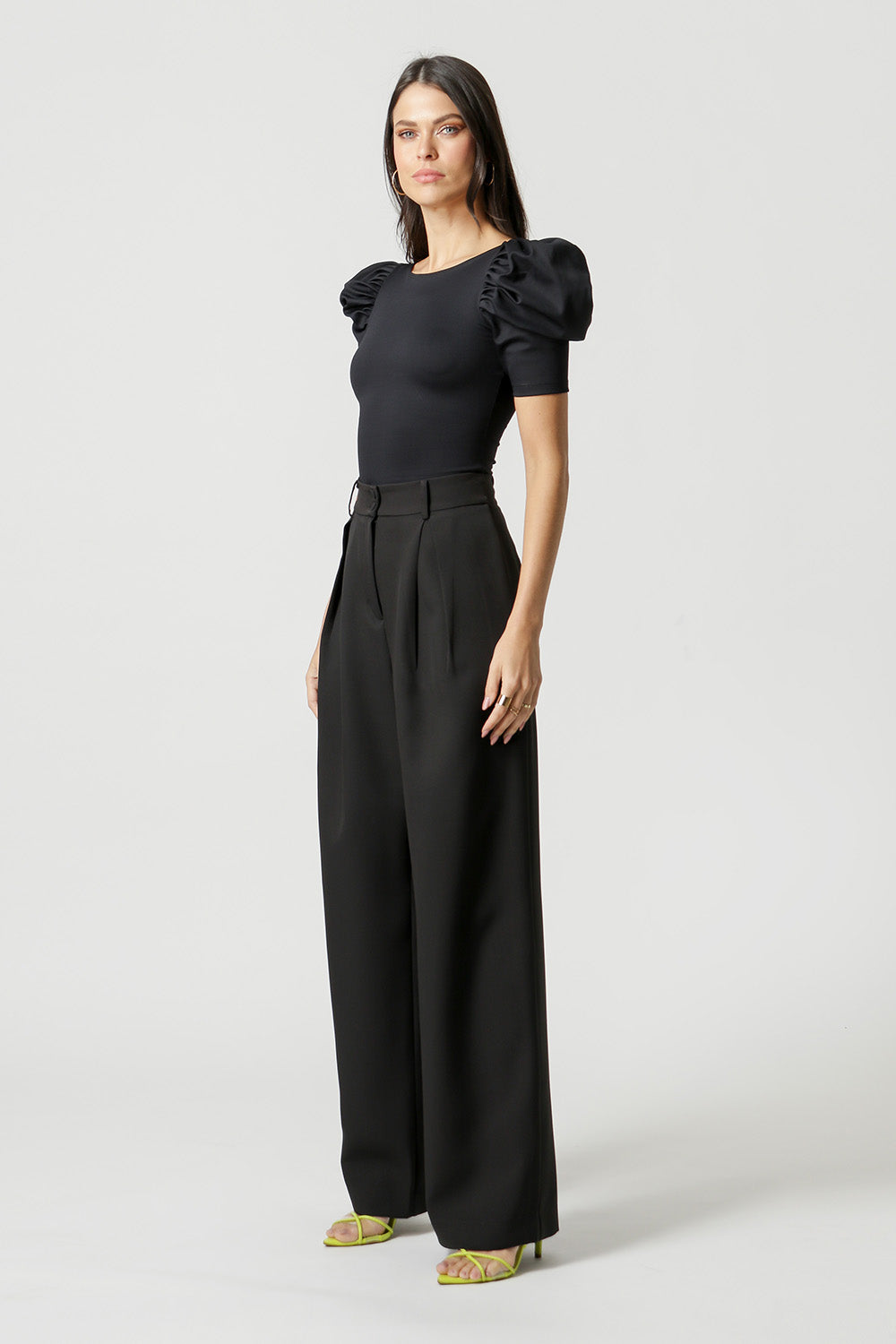 • Blusa con mangas abullonadas y pliegues - NEGRO 1