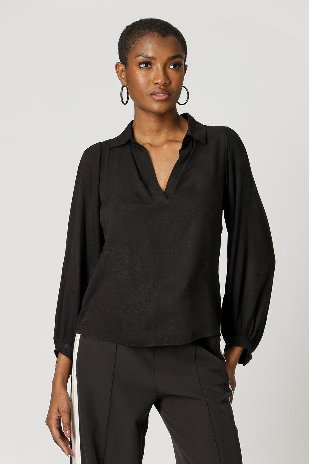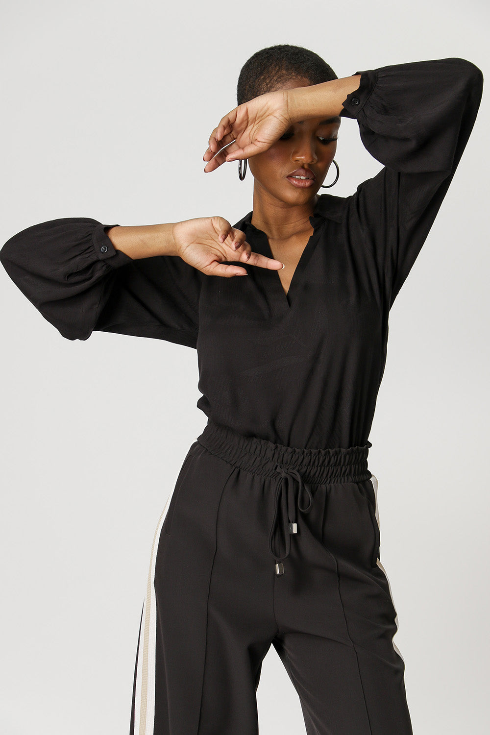 Blusa con mangas abullonadas confeccionada en tejido de viscosa. Una pieza cómoda, perfecta para cualquier ocasión.