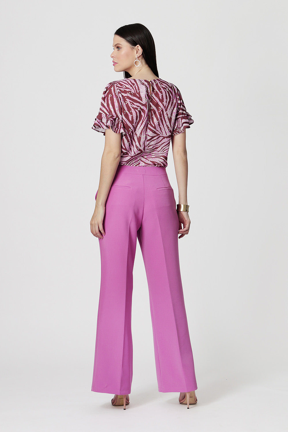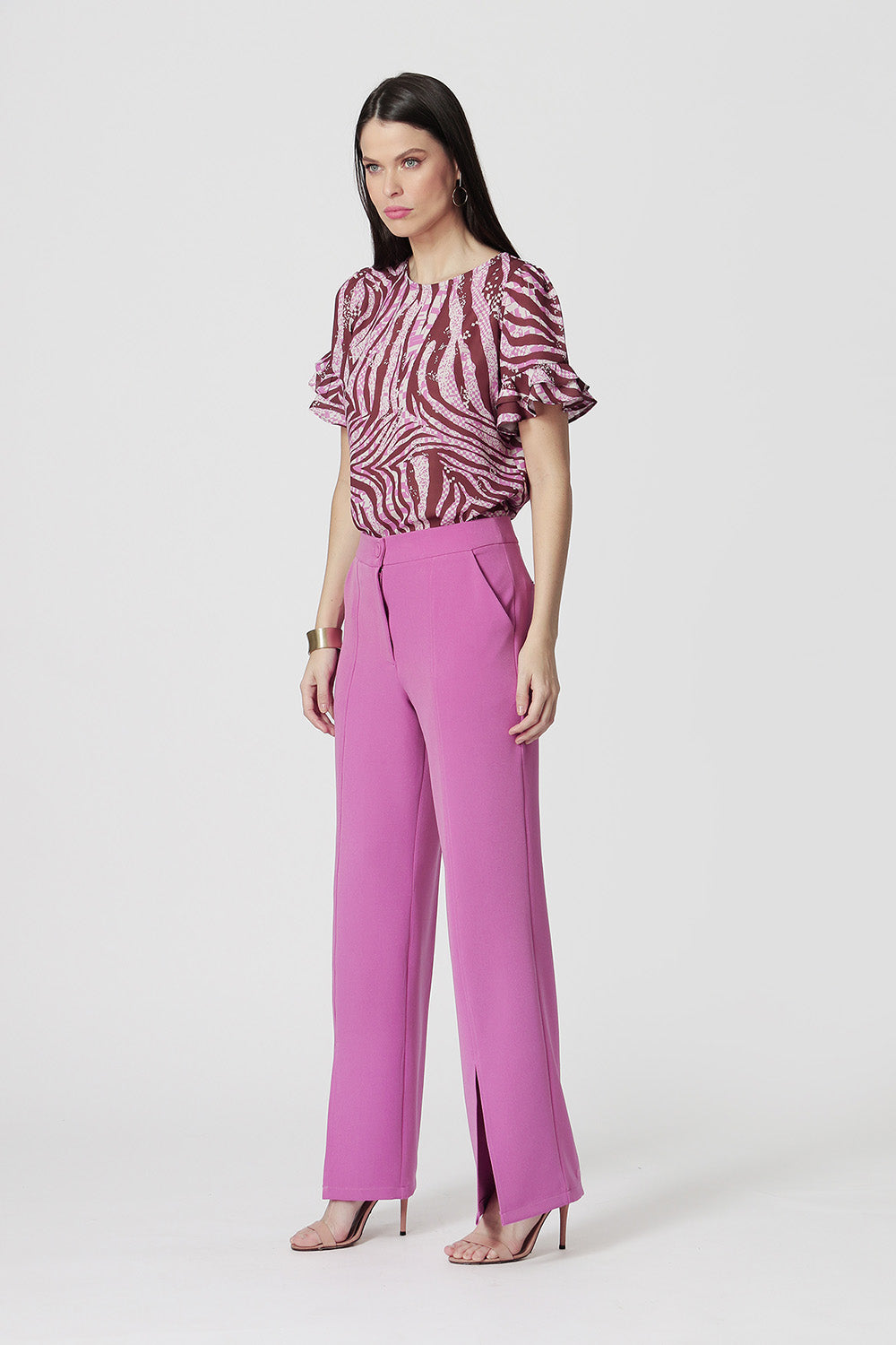 Blusa de crepe estampada con mangas con volantes y cierre de botones en la espalda. Pieza fluida y delicada, gran opción para looks de trabajo.