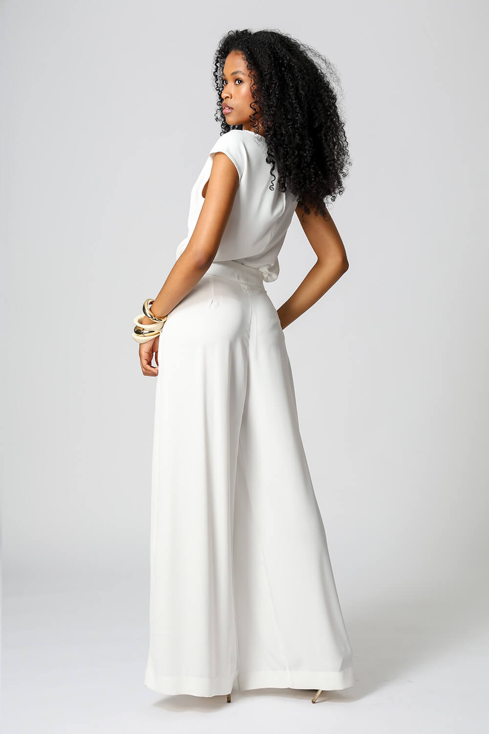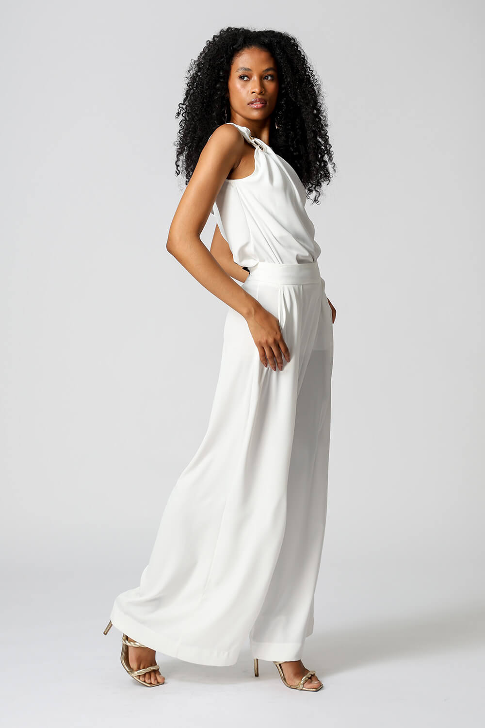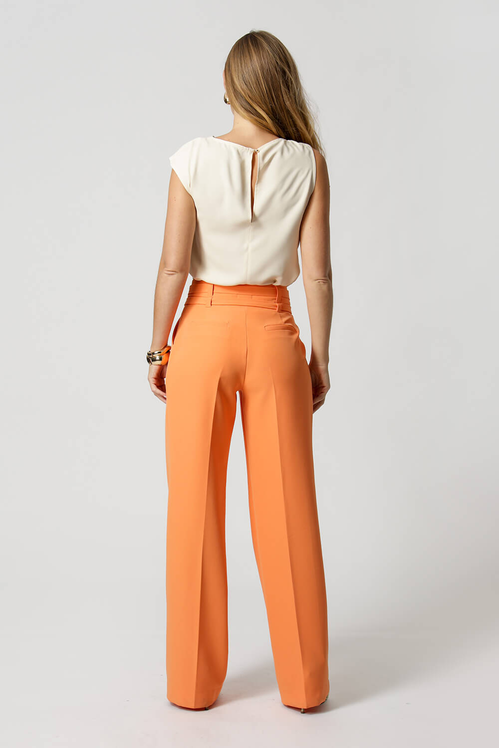 Blusa em crepe Segall com detalhe de metal dourado oval abaulado, que traz um toque de sofisticação ao visual. Elegante e moderna, ideal para produções versáteis.