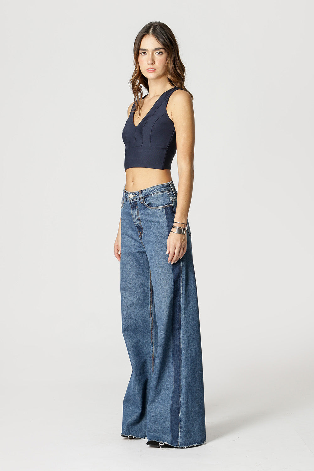 Blusa con escote en pico, canesú en cintura y cortes cosidos. Pieza básica, cómoda, ideal para crear looks casual.