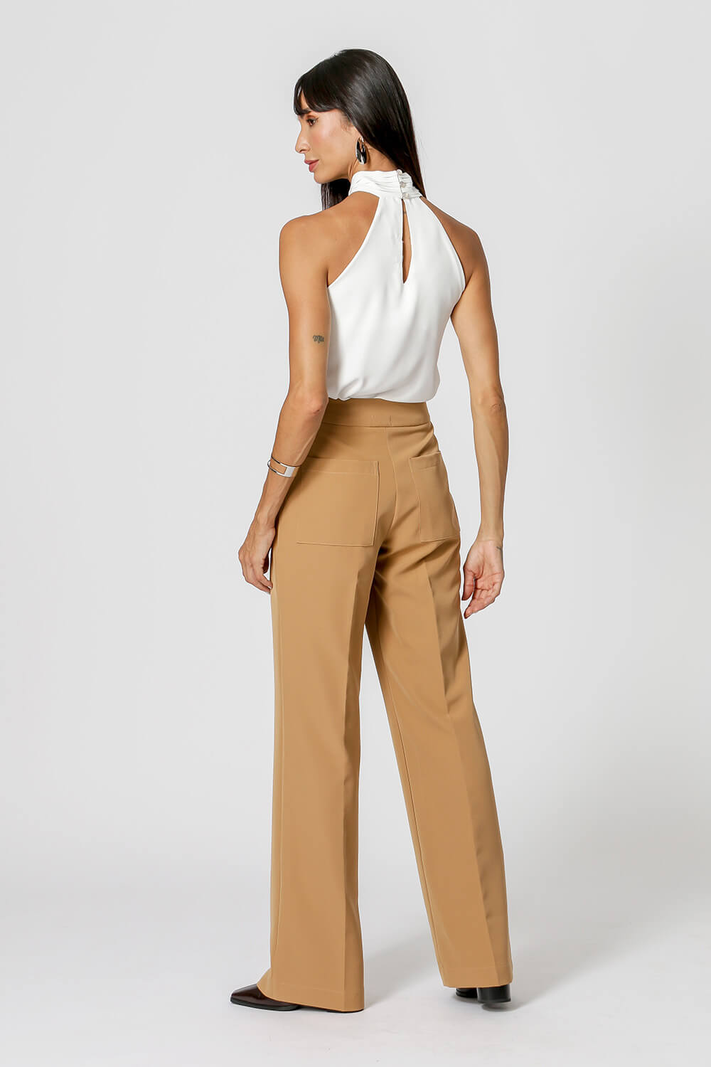 Blusa de cuello cruzado con detalles plisados ​​y botones en la espalda. Un modelo confeccionado en tejido Crepe fluido y con ligera caída, aportando elegancia y versatilidad a tus looks.