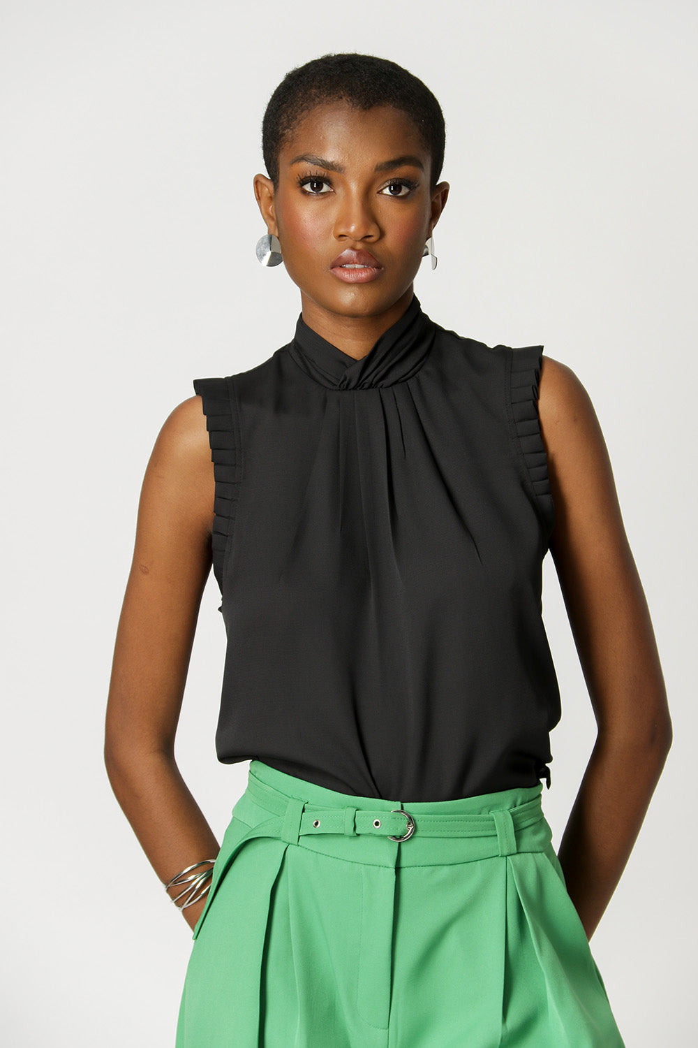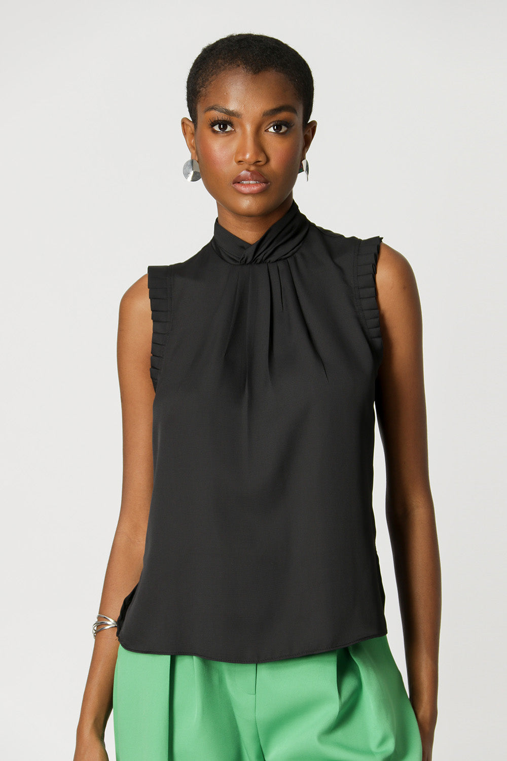 • Blusa con pliegues en el cuello - NEGRO