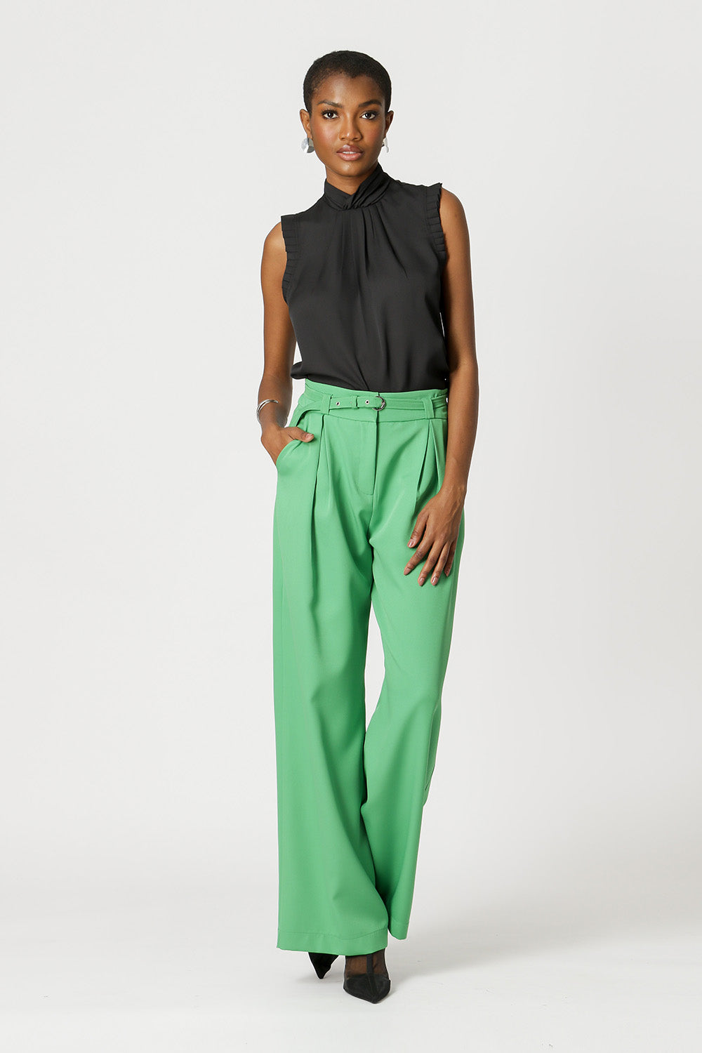 Blusa con detalle plisado en el cuello. Fabricado en tejido crepe segall. Una pieza delicada y chic, perfecta para crear diferentes looks de trabajo.