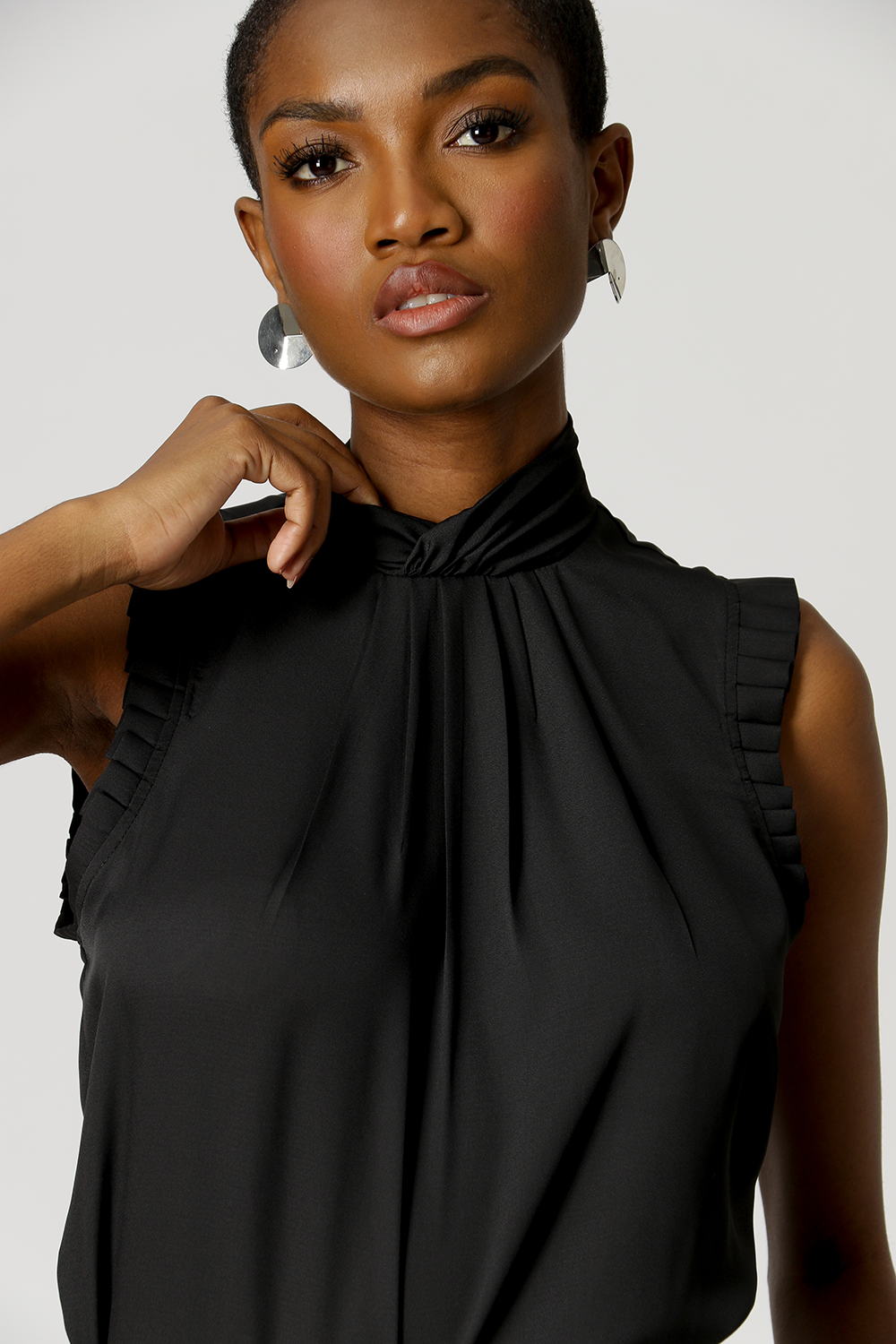 Blusa con pliegues en el cuello - NEGRO