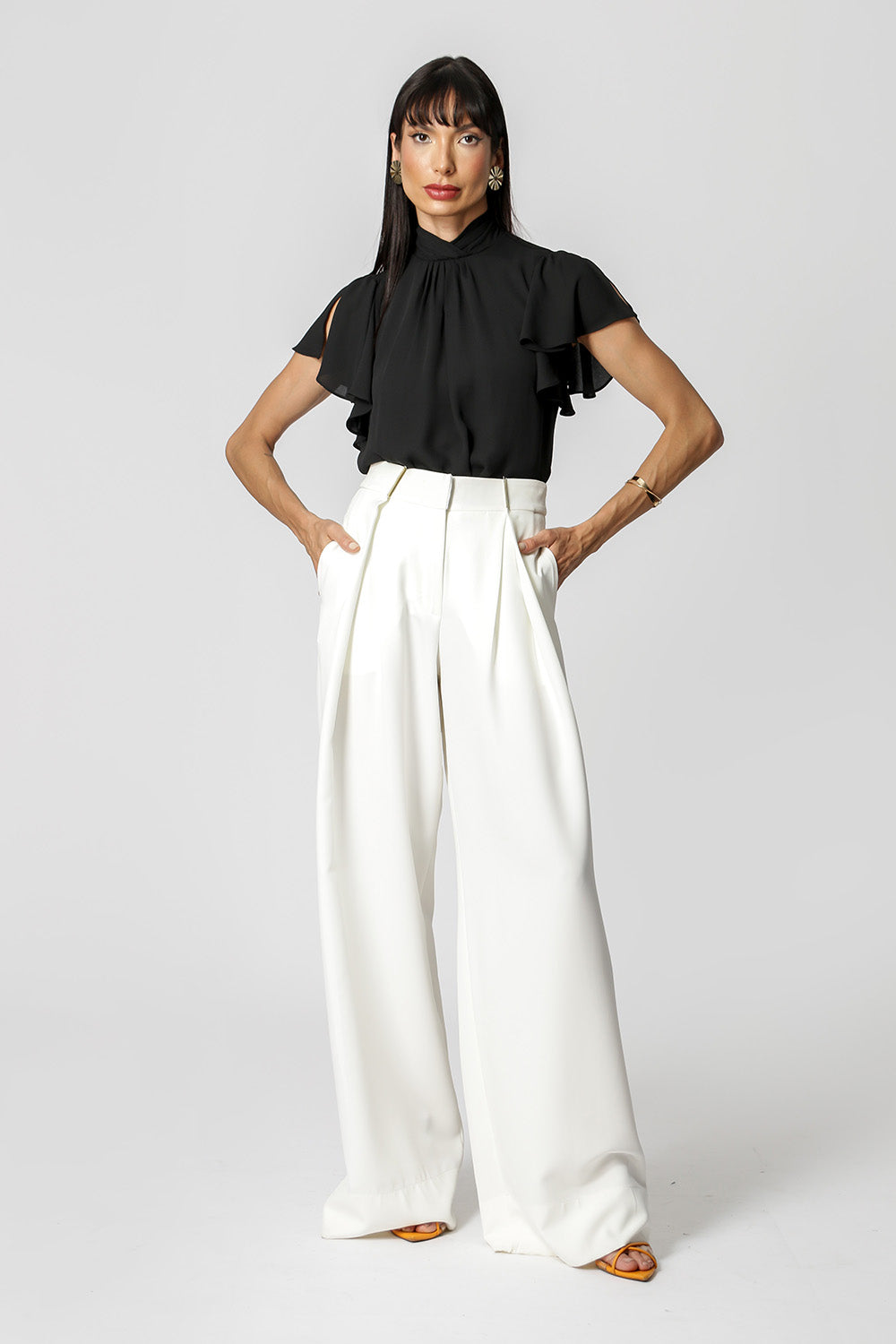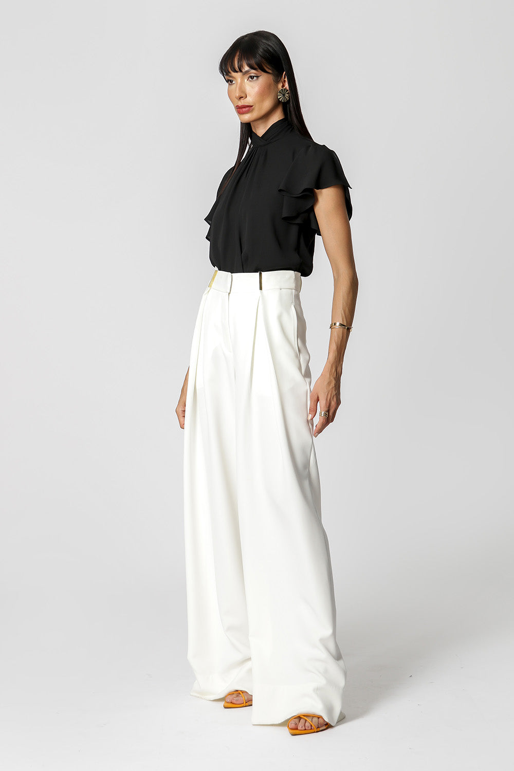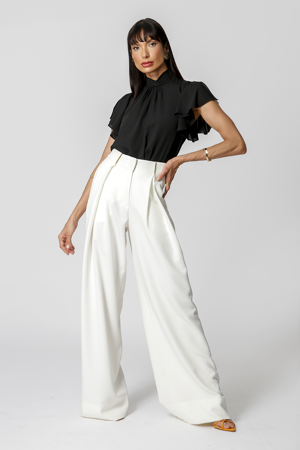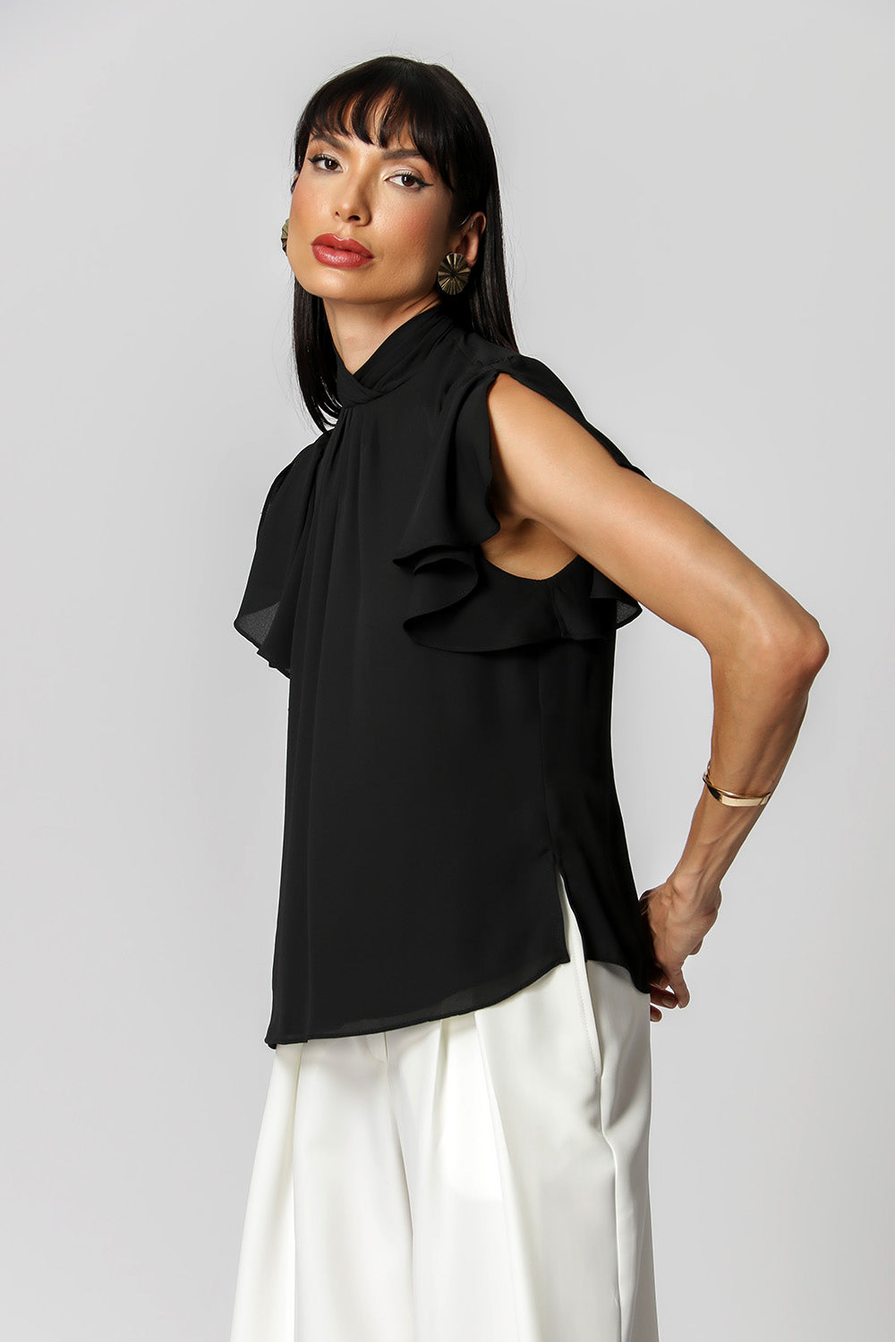 Blusa con pliegues en el cuello y detalle de botones en la espalda. Pieza confeccionada en tejido crepé fluido. Una prenda elegante y de corte holgado, perfecta para crear looks especiales en tu día a día.