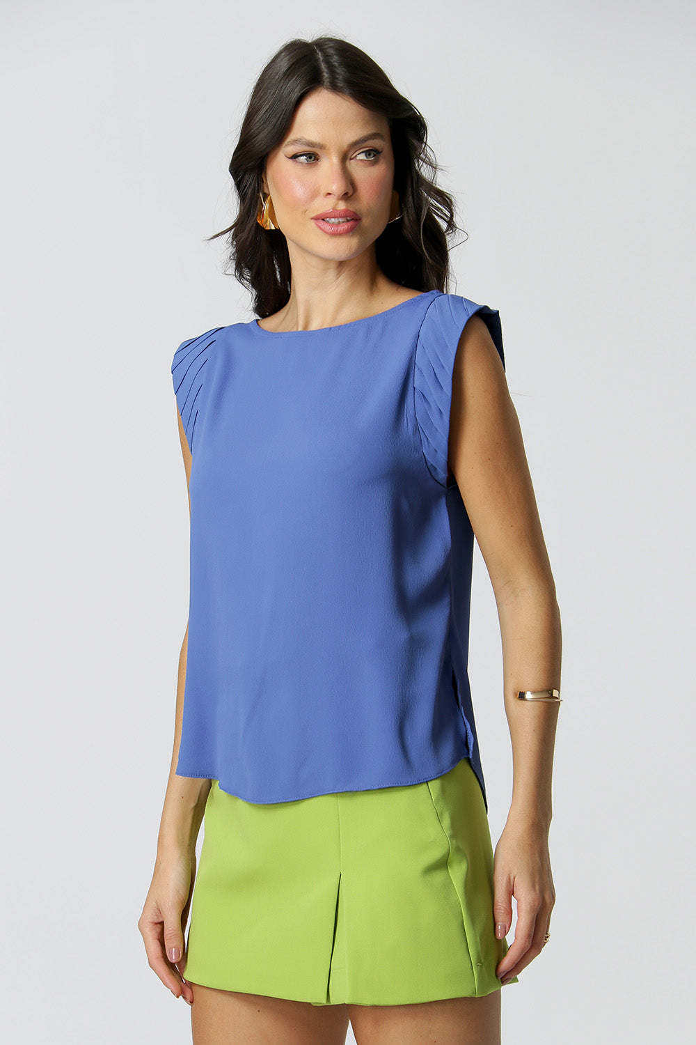 Blusa con detalle de pliegues en las sisas, escote barco y corte holgado. La pieza perfecta para darle un toque diferente a tu look.