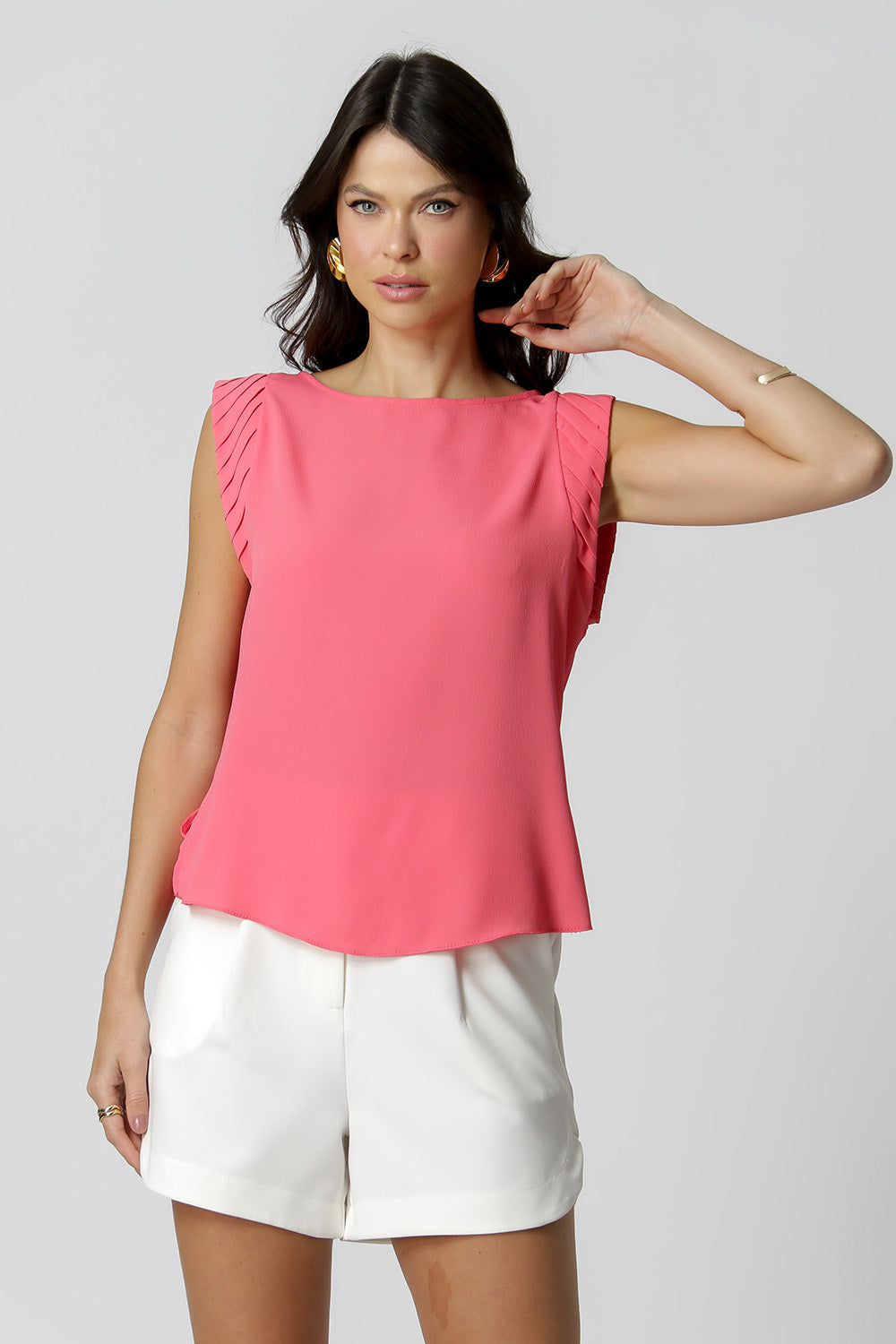 Blusa con detalle de pliegues en las sisas, escote barco y corte holgado. La pieza perfecta para darle un toque diferente a tu look.