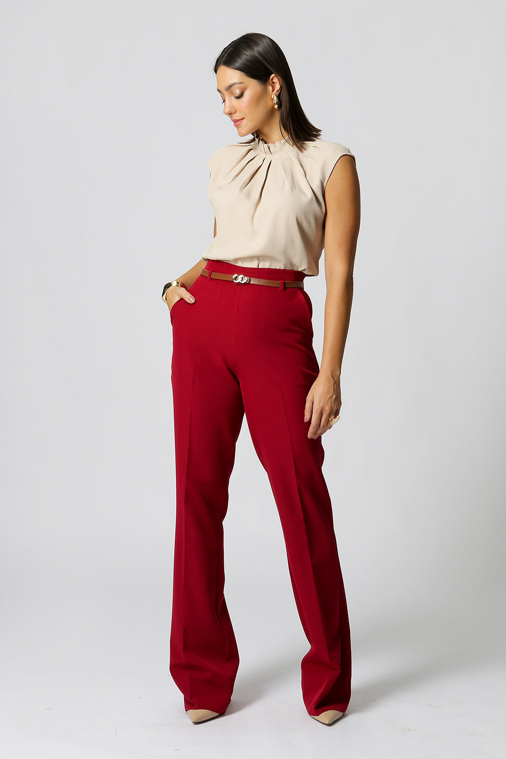 Blusa de manga corta con detalle plisado en el escote. ¡Pieza atemporal perfecta para tu nuevo look de trabajo!