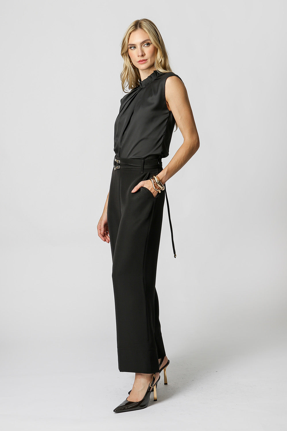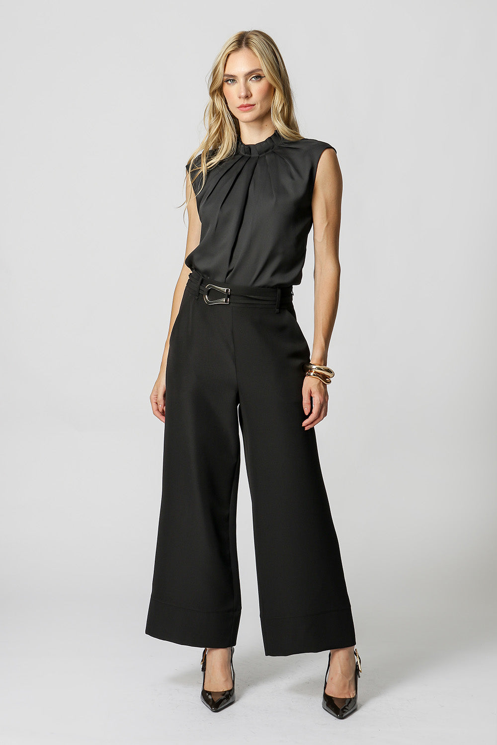 Blusa de manga corta con detalle plisado en el escote. ¡Pieza atemporal perfecta para tu nuevo look de trabajo!