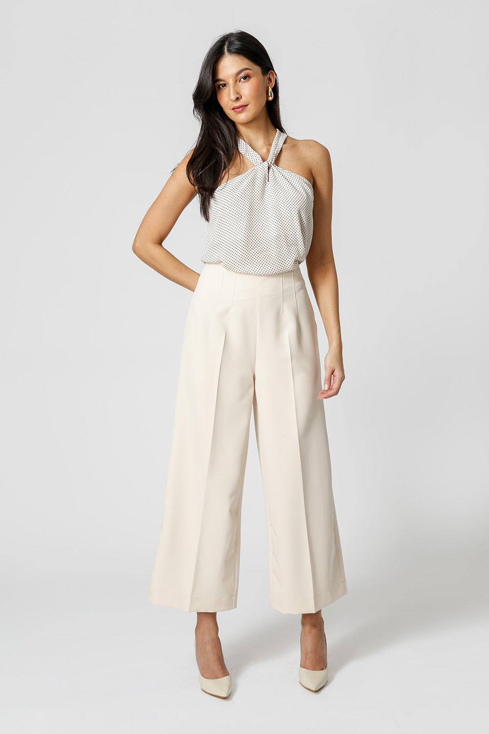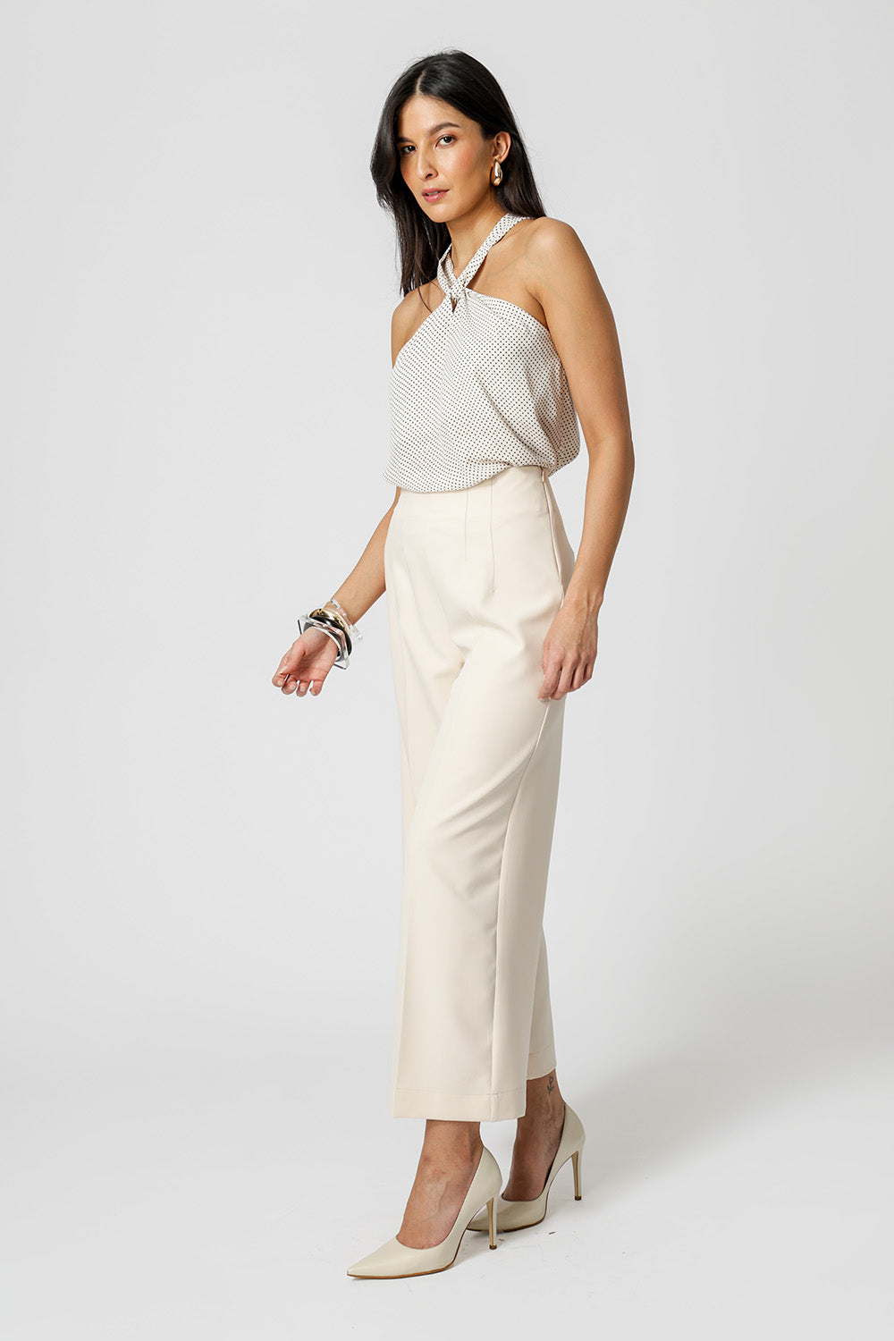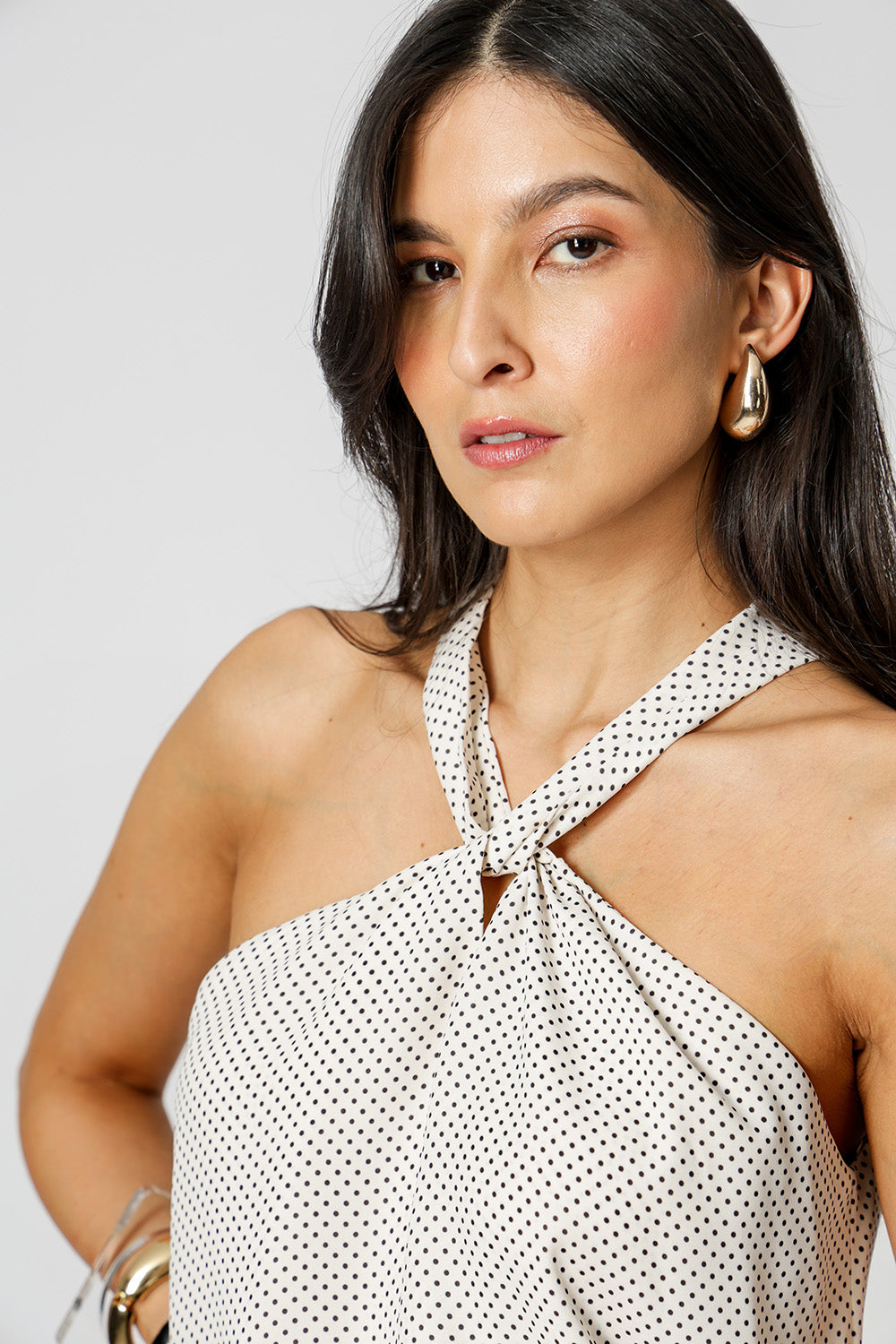 Blusa estampada com torção frontal. Confeccionada em tecido creponado.