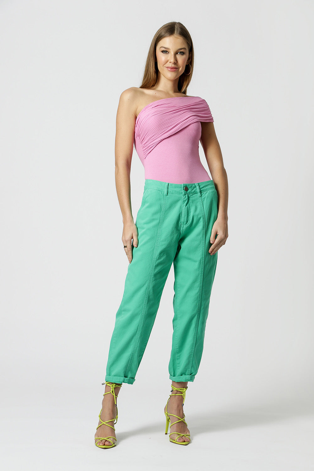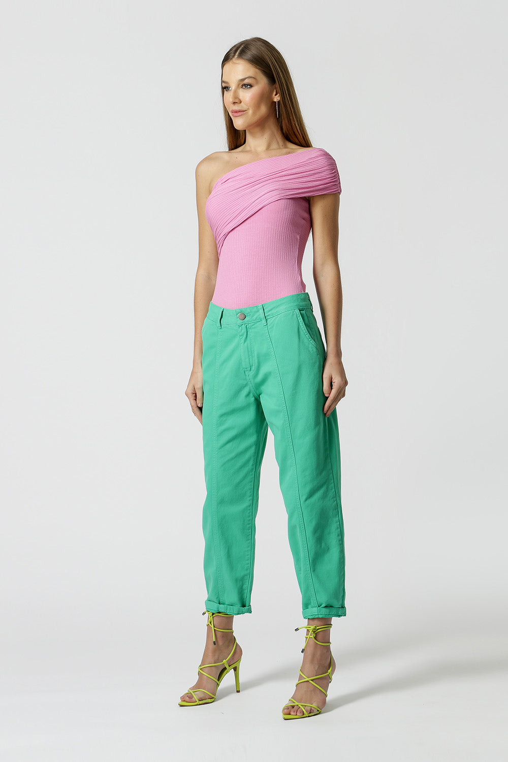 Blusa de un solo hombro y corte entallado. Pieza confeccionada en punto canalé. ¡Ideal para componer tu look casual!