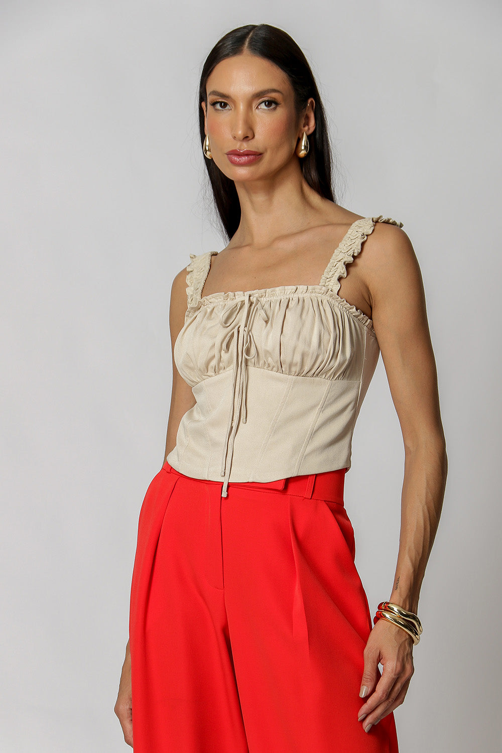 Blusa corsé con volantes en el busto, un modelo romántico y delicado para lucir estados de ánimo casuales.