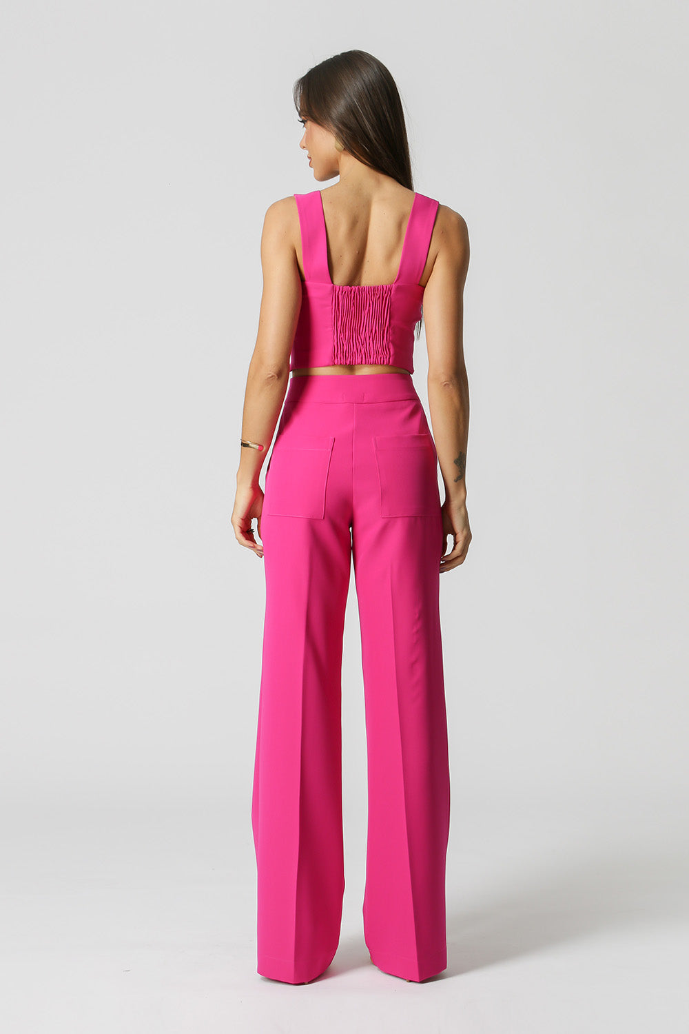 Blusa corsé con escote redondeado y detalle elástico en la espalda. Fabricado con tejido a medida. Una pieza perfecta para crear una variedad de looks casuales con estilo.