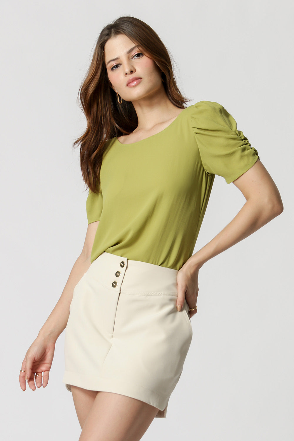 • Blusa de crepé con mangas con volantes - OLIVA