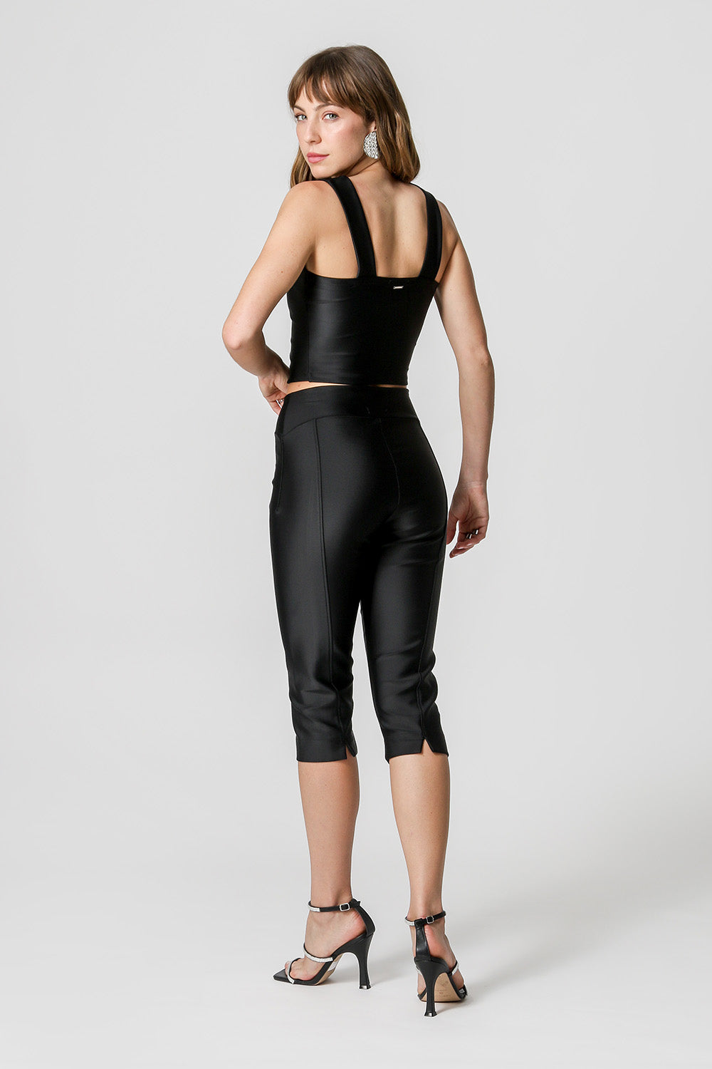 Blusa cropped con tirantes anchos y aberturas. Pieza moderna con un toque de moda.