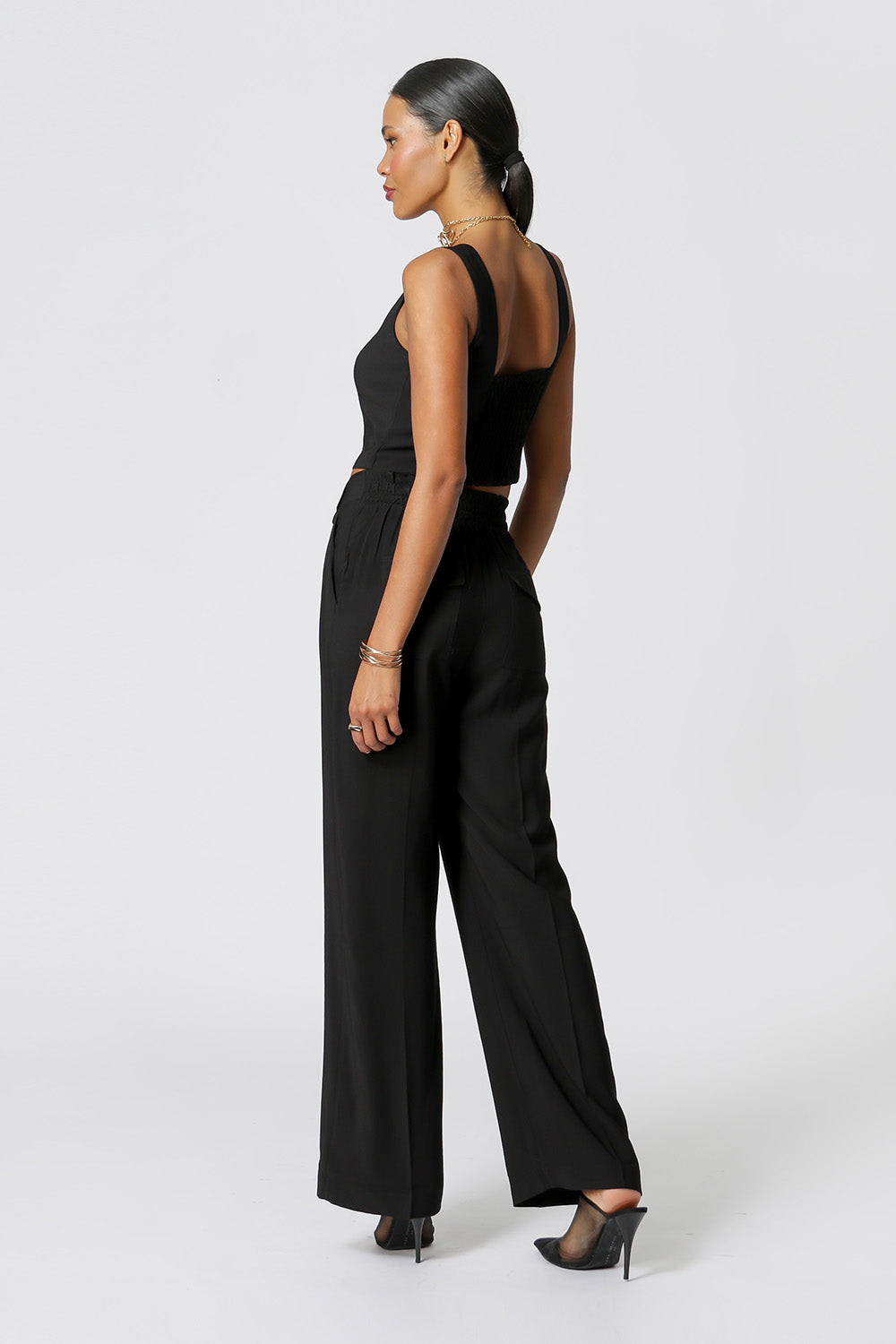 Blusa cropped con detalle elástico en espalda y ribete en V debajo del busto. Fabricado en tejido Tencel. Una pieza llena de encanto y tendencia para combinar con un look de trabajo.
