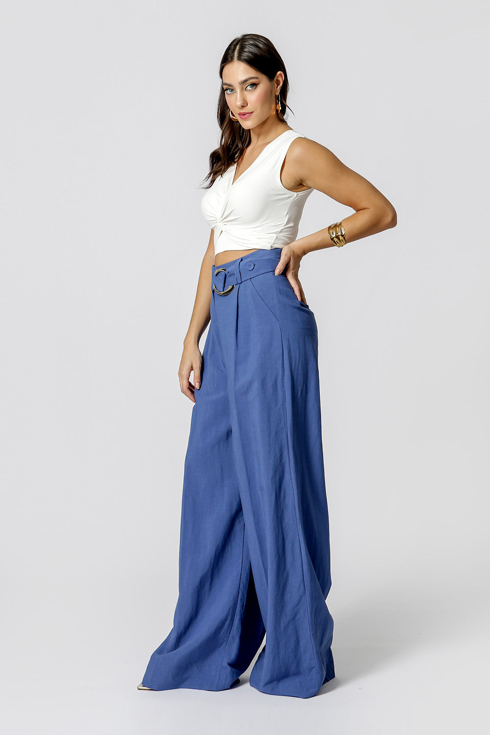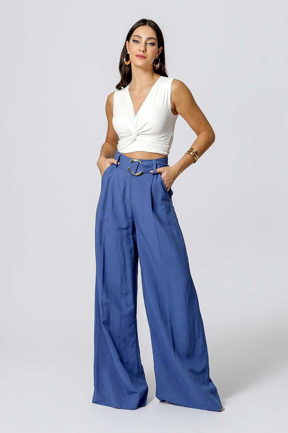 Blusa cropped en tejido de poliamida y elastano. Con escote en pico, tiene un trabajo de torsión en la parte delantera, lo que hace que la pieza sea diferente y fresca.