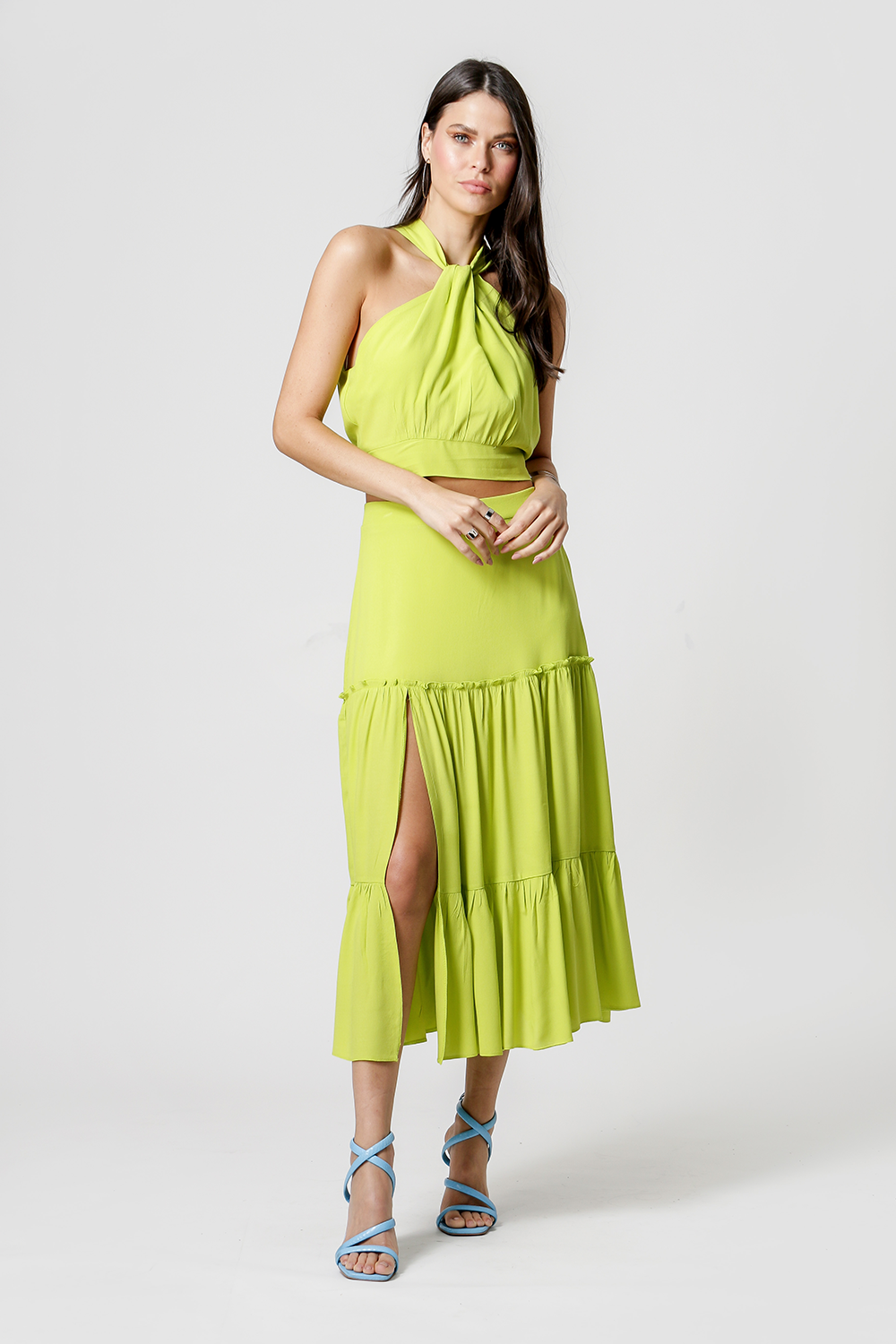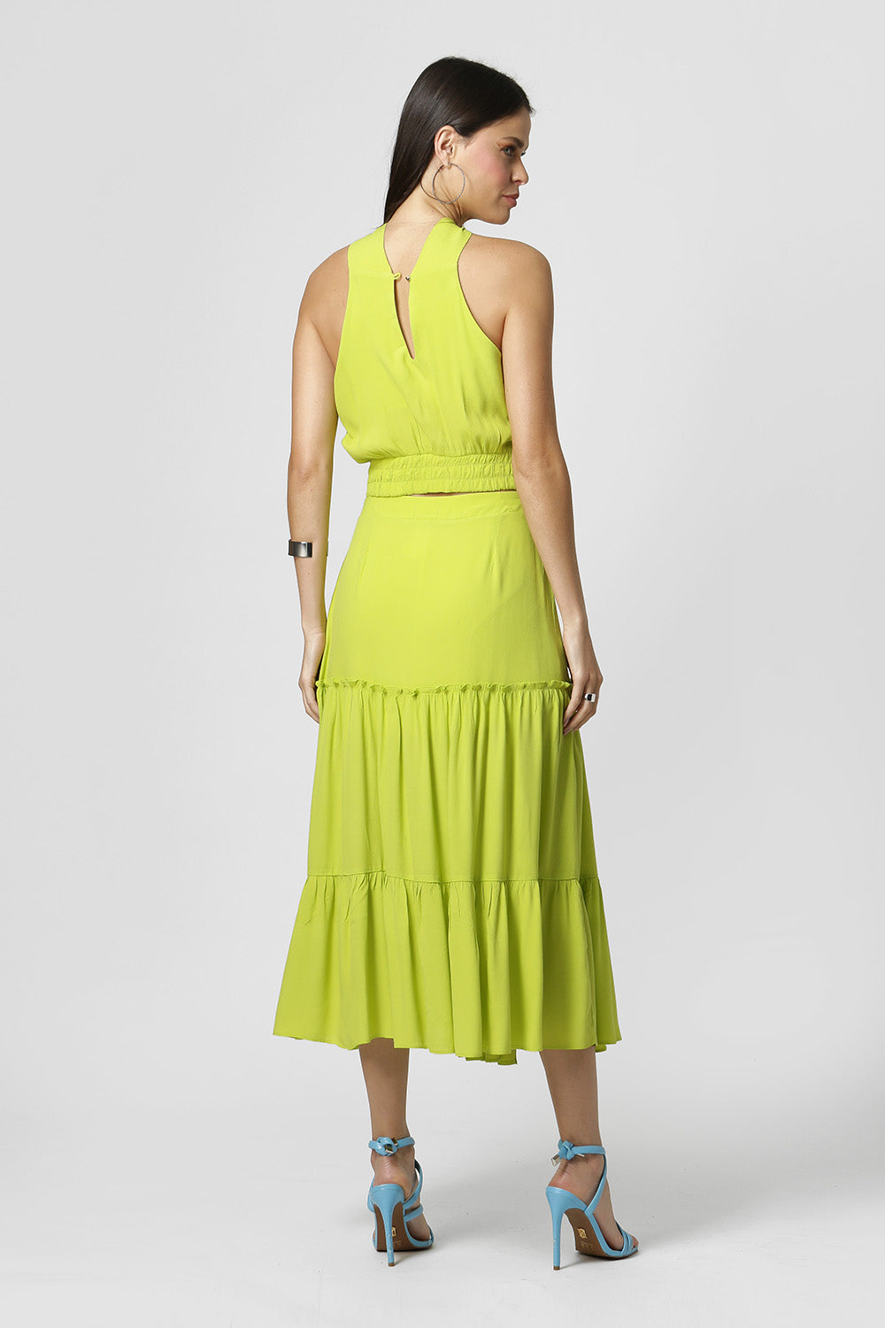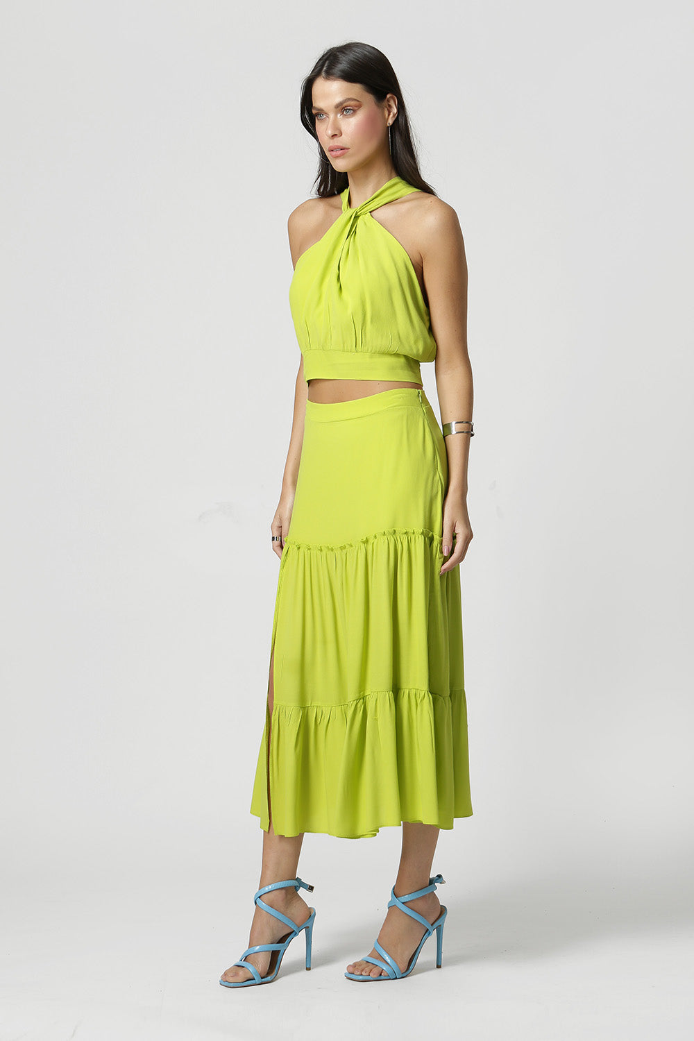 Blusa cropped con sisa americana, canesú, elástico en el canesú de la espalda y escote cruzado. Una pieza confeccionada en crepe de viscosa, perfecta para los días más cálidos.