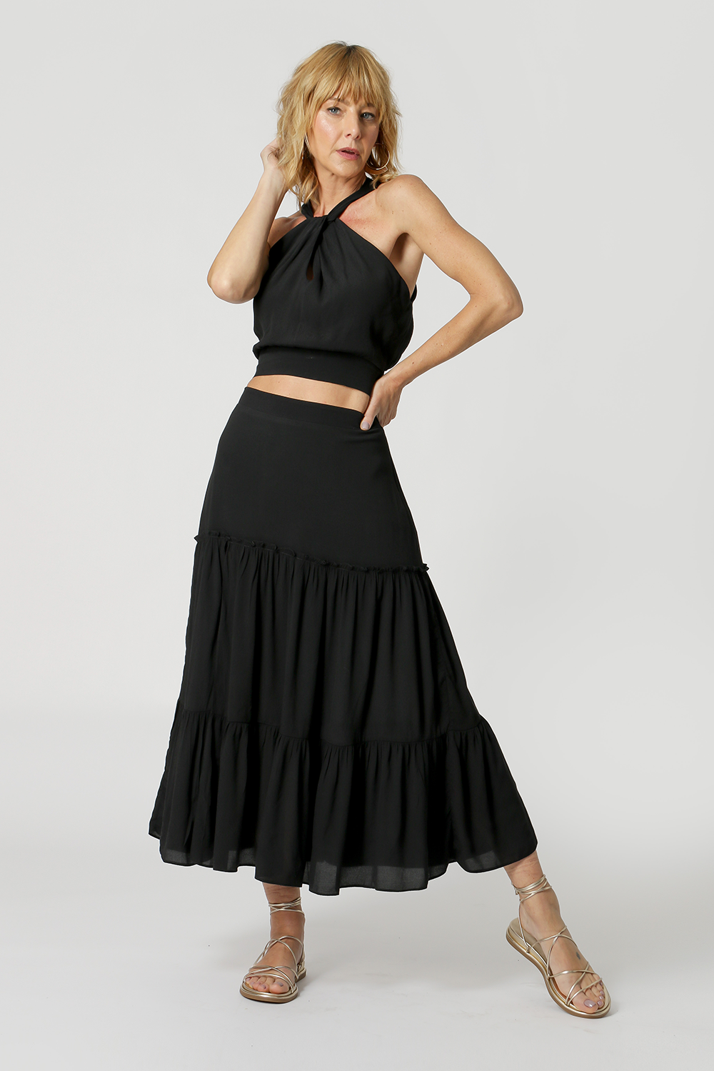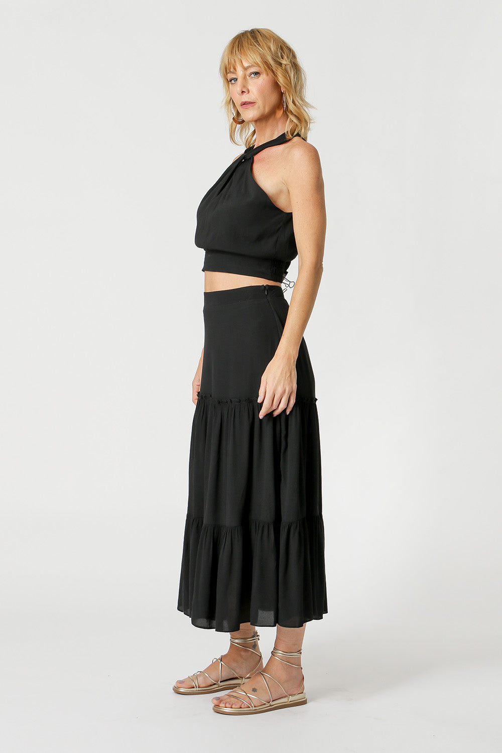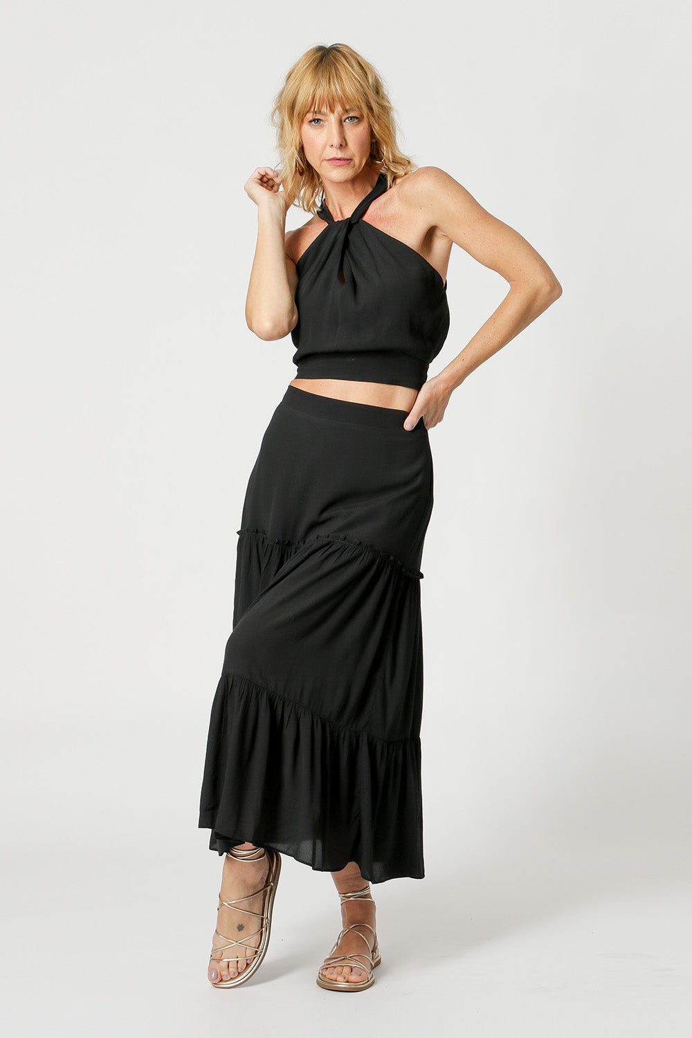 Blusa cropped con sisa americana, canesú, elástico en el canesú de la espalda y escote cruzado. Una pieza confeccionada en crepe de viscosa, perfecta para los días más cálidos.