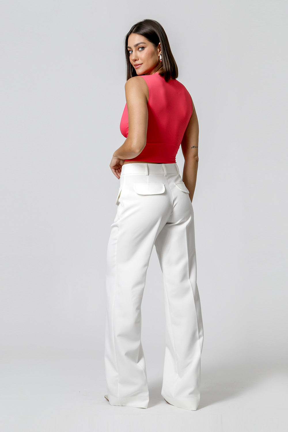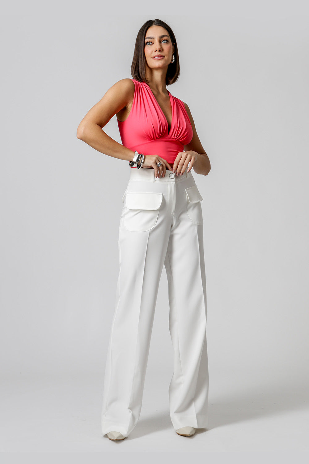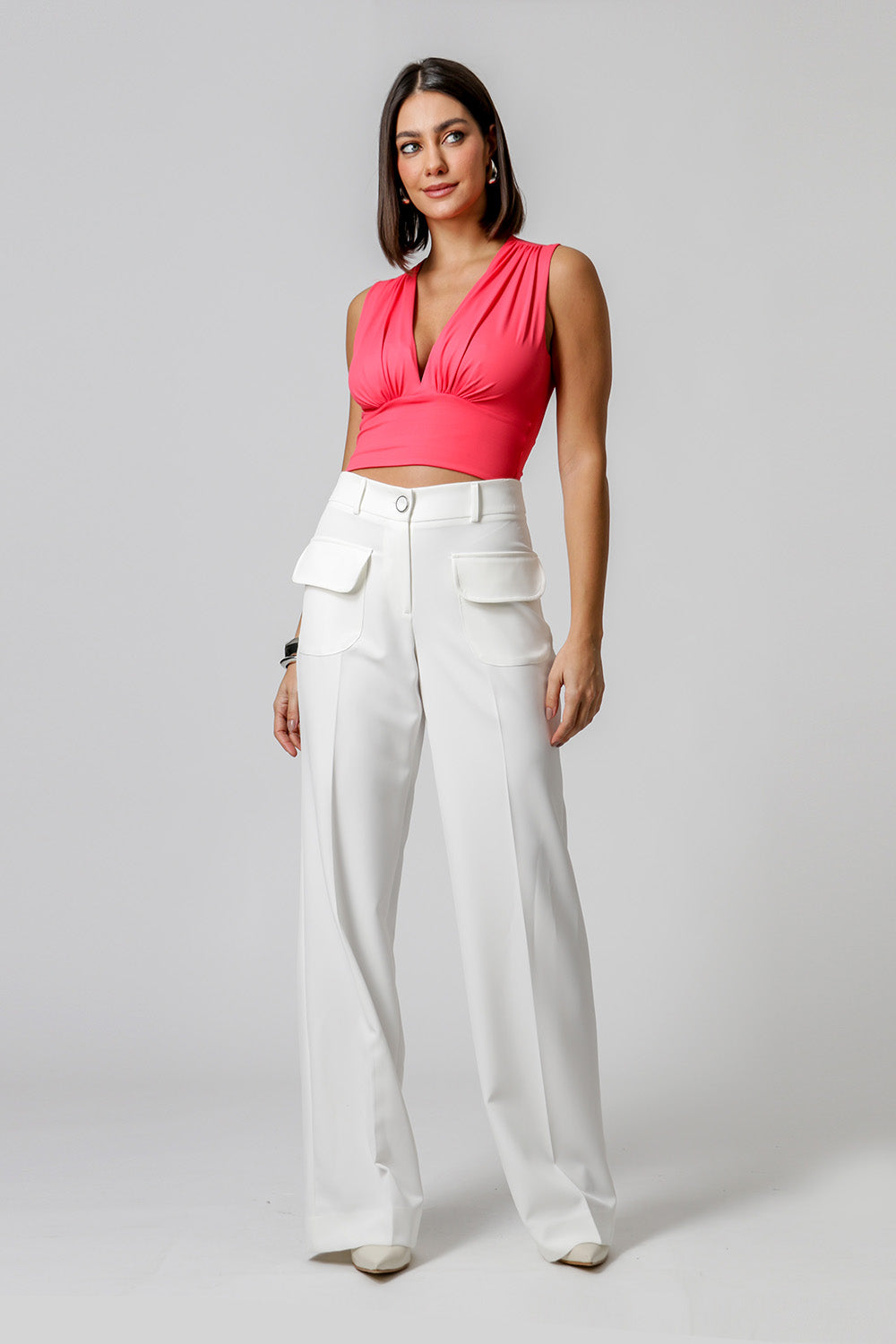 Blusa cropped con escote pico confeccionada en tejido amni. Tiene metal interno que estructura el escote.