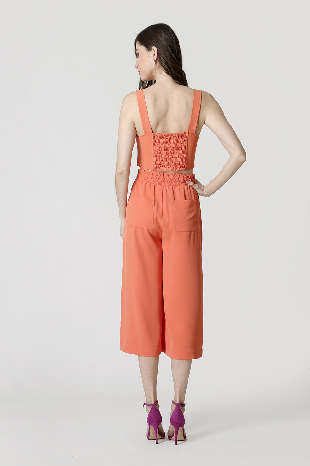Top corto con tirantes anchos. Tiene detalles elásticos en el medio de la espalda, recortes en el busto y un hermoso escote corazón. Pieza versátil para crear looks ligeros para la temporada.