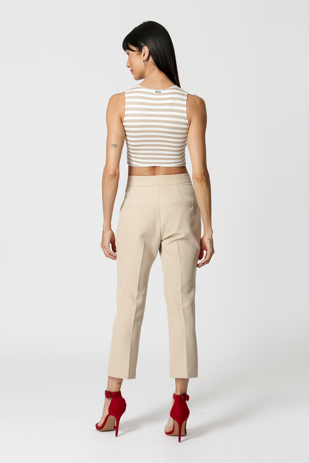 Blusa corta sin mangas. Fabricado en tejido de punto a rayas. Un modelo básico, perfecto para crear looks casual.