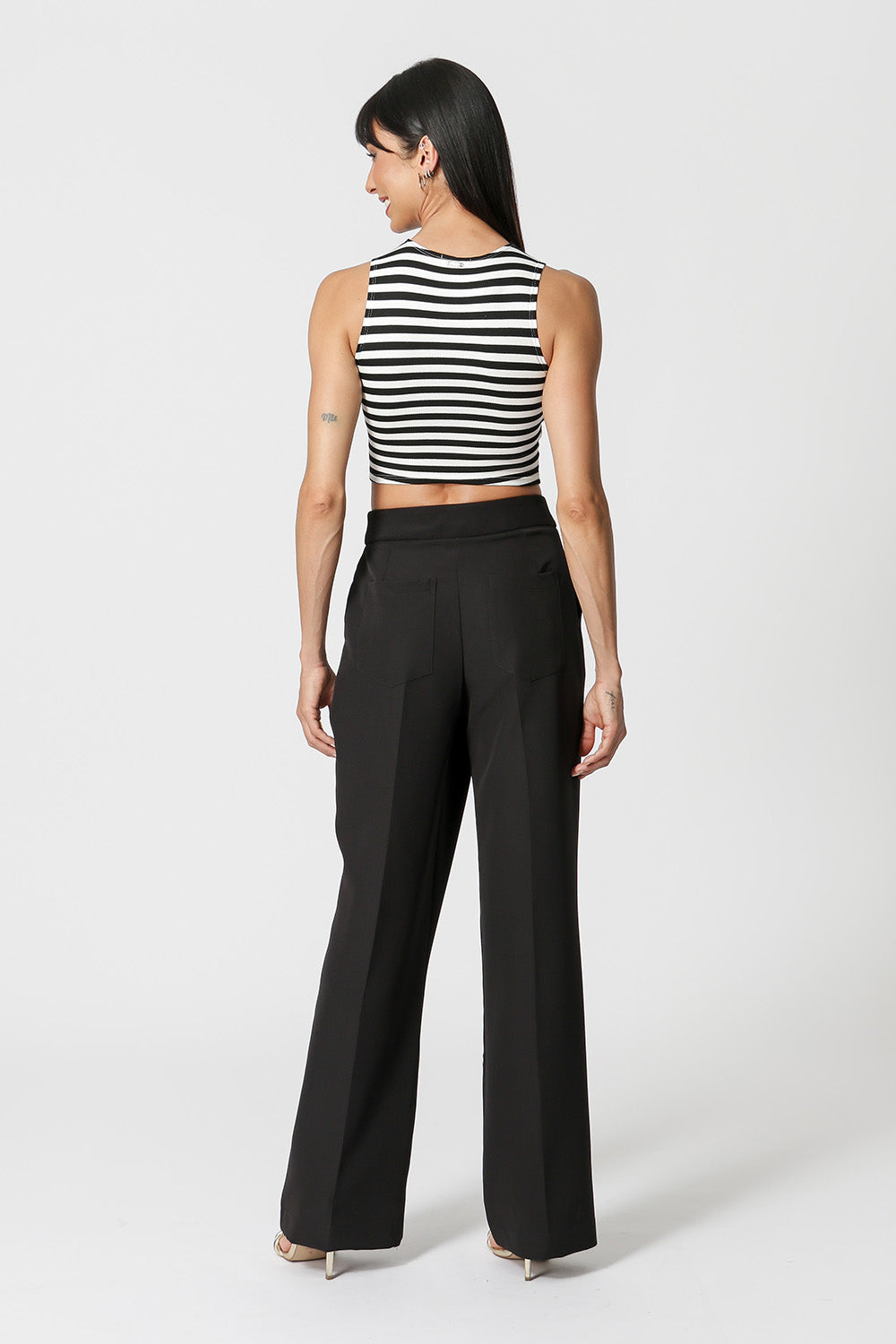 Blusa corta sin mangas. Fabricado en tejido de punto a rayas. Un modelo básico, perfecto para crear looks casual.