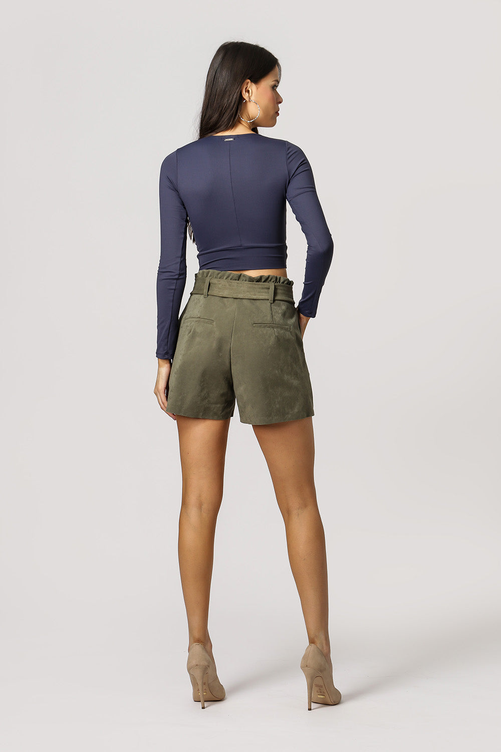 Top corto de manga larga con nudo - AZUL MARINO 2
