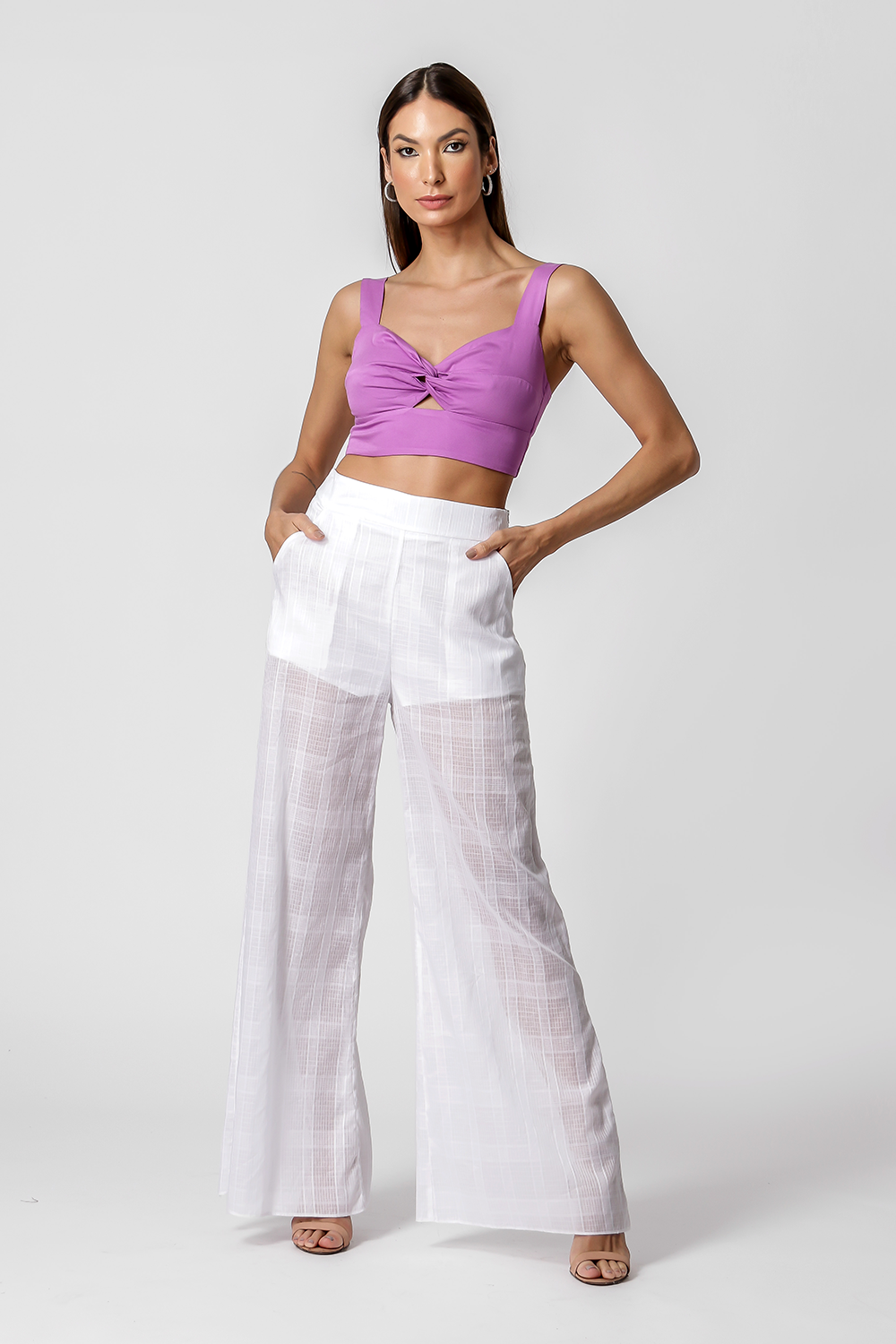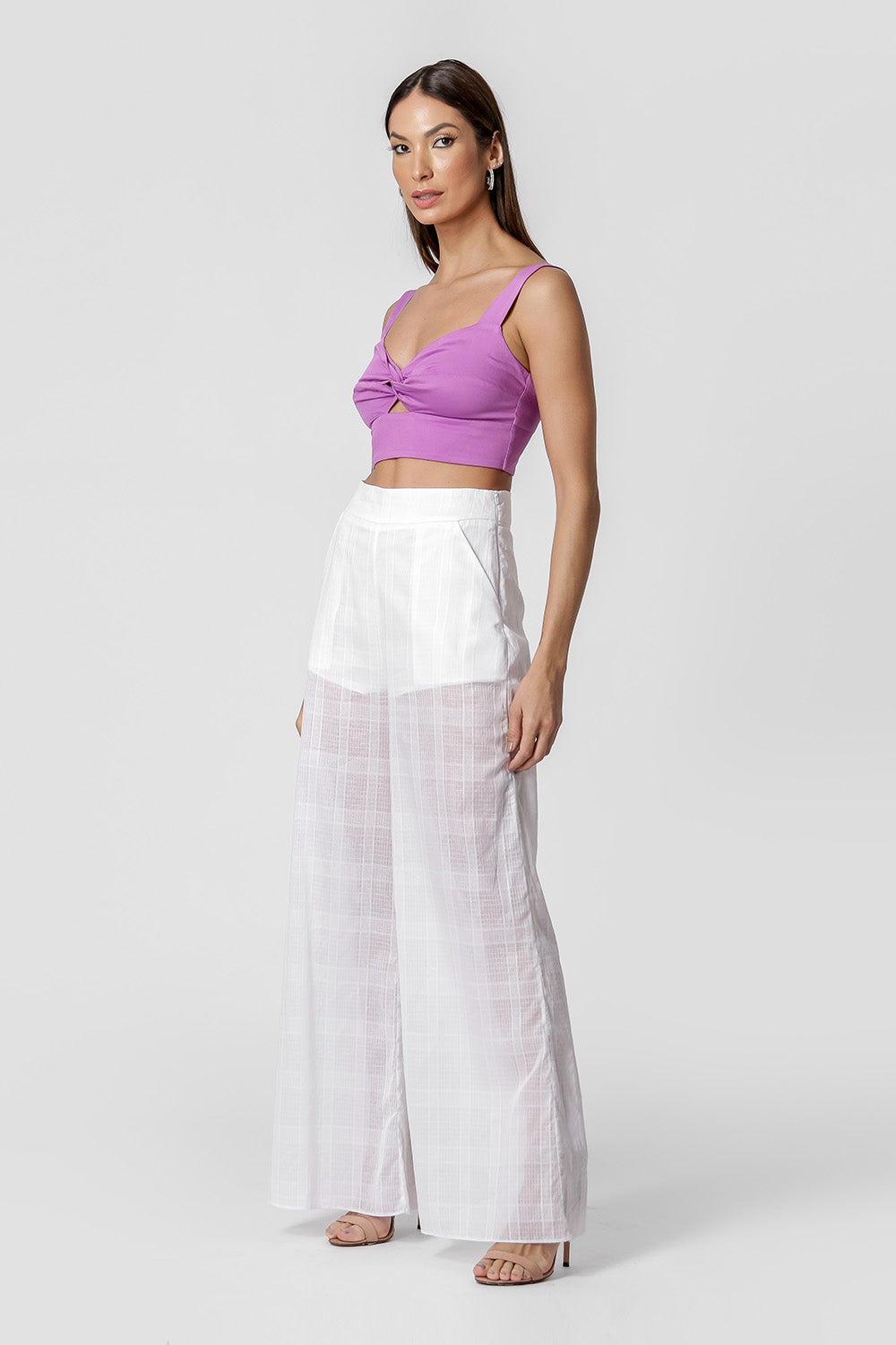 Top corto con tirantes anchos y detalle de giro en el escote. Tiene elástico en la espalda. Blusa confeccionada en viscosa fluida, un material ligero y de baja compresión, lo que significa la cantidad justa de comodidad.