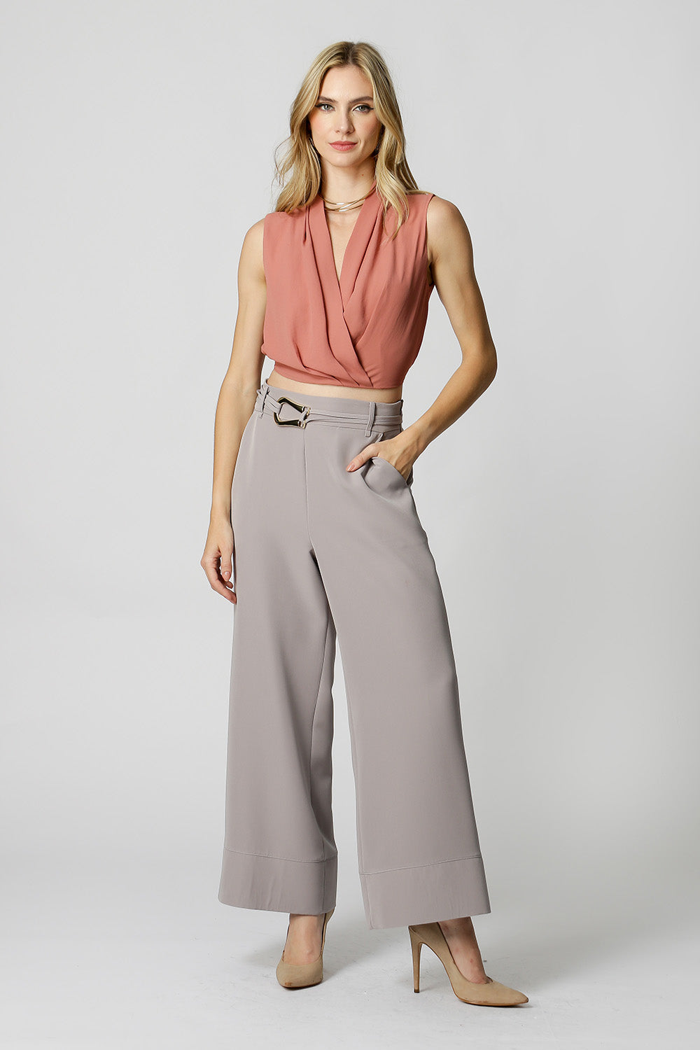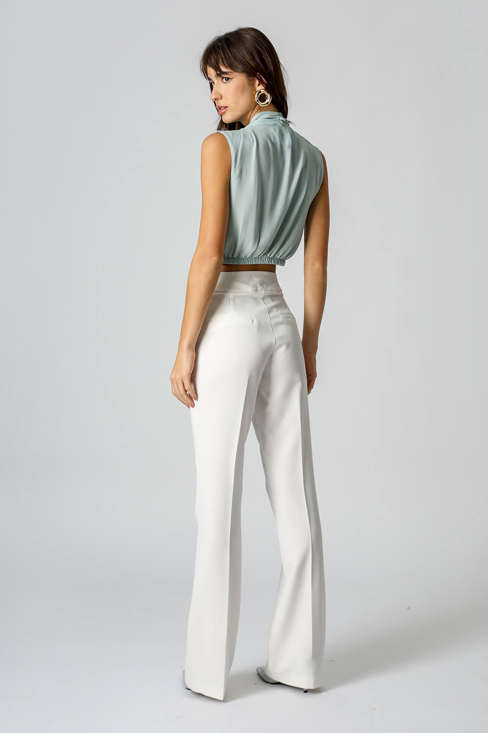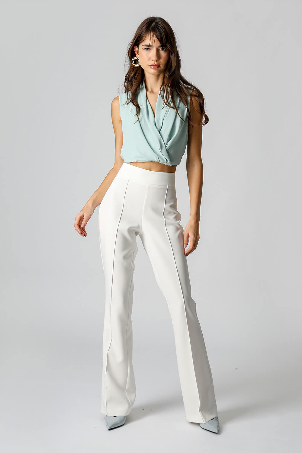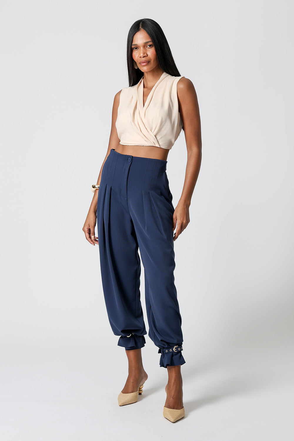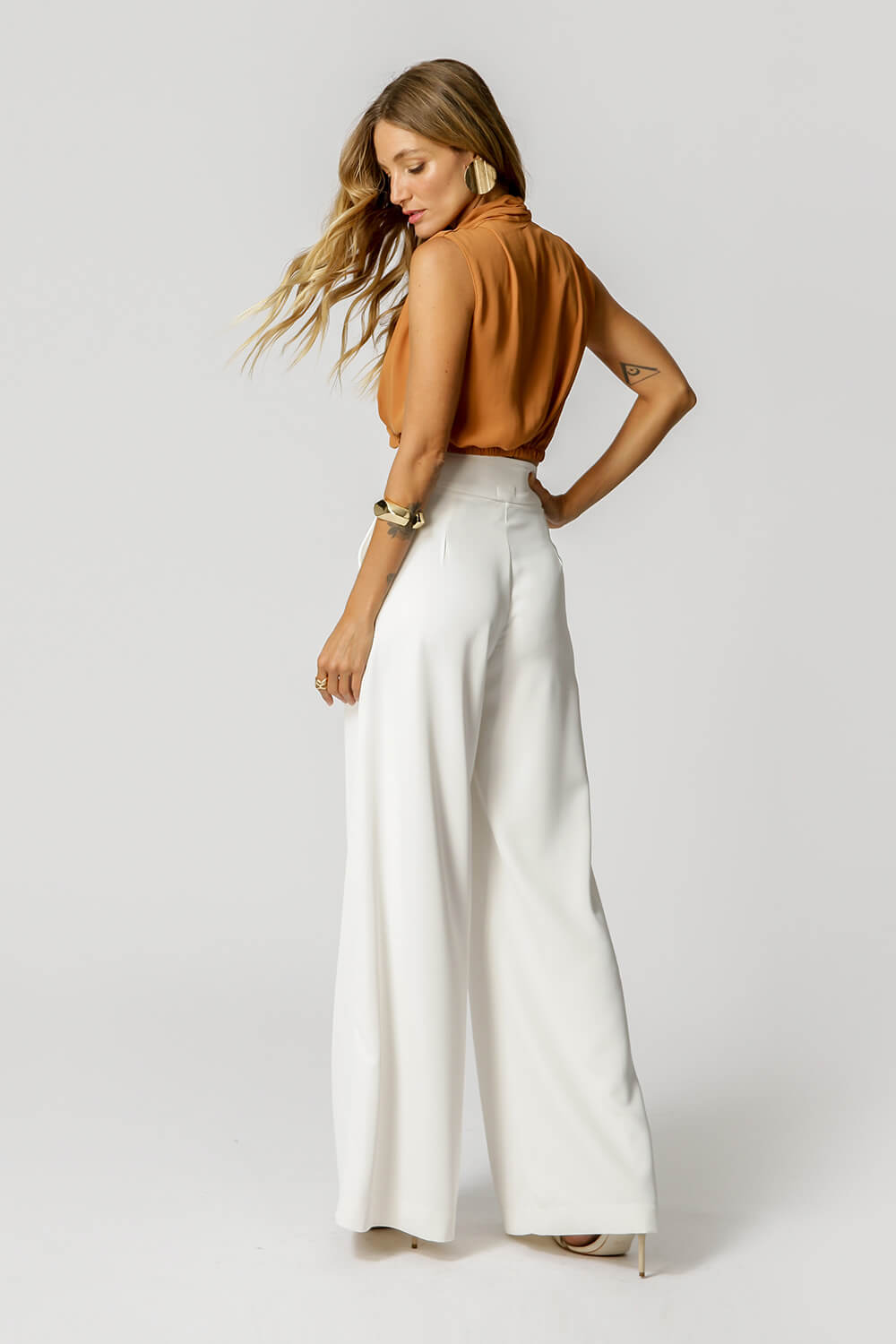Blusa cropped transpassada e com elástico na barra. Uma peça confeccionada em tecido crepe fluído. Um modelo perfeito para mood work.