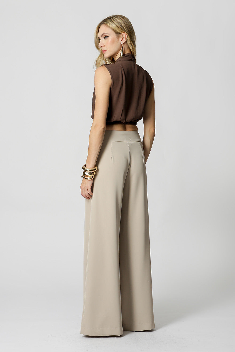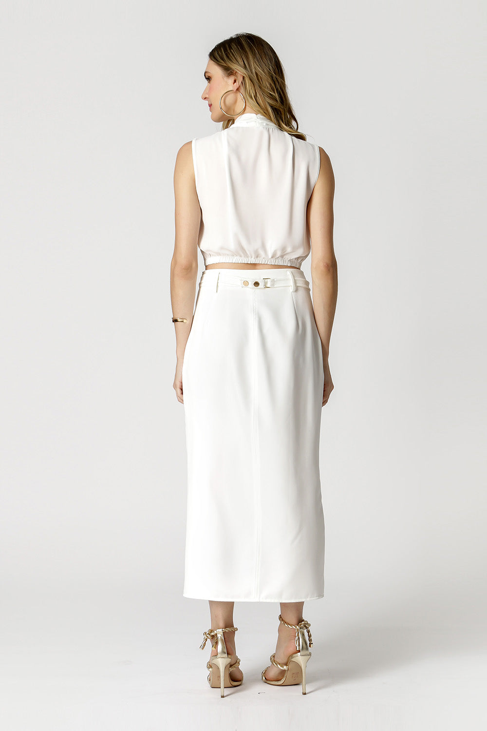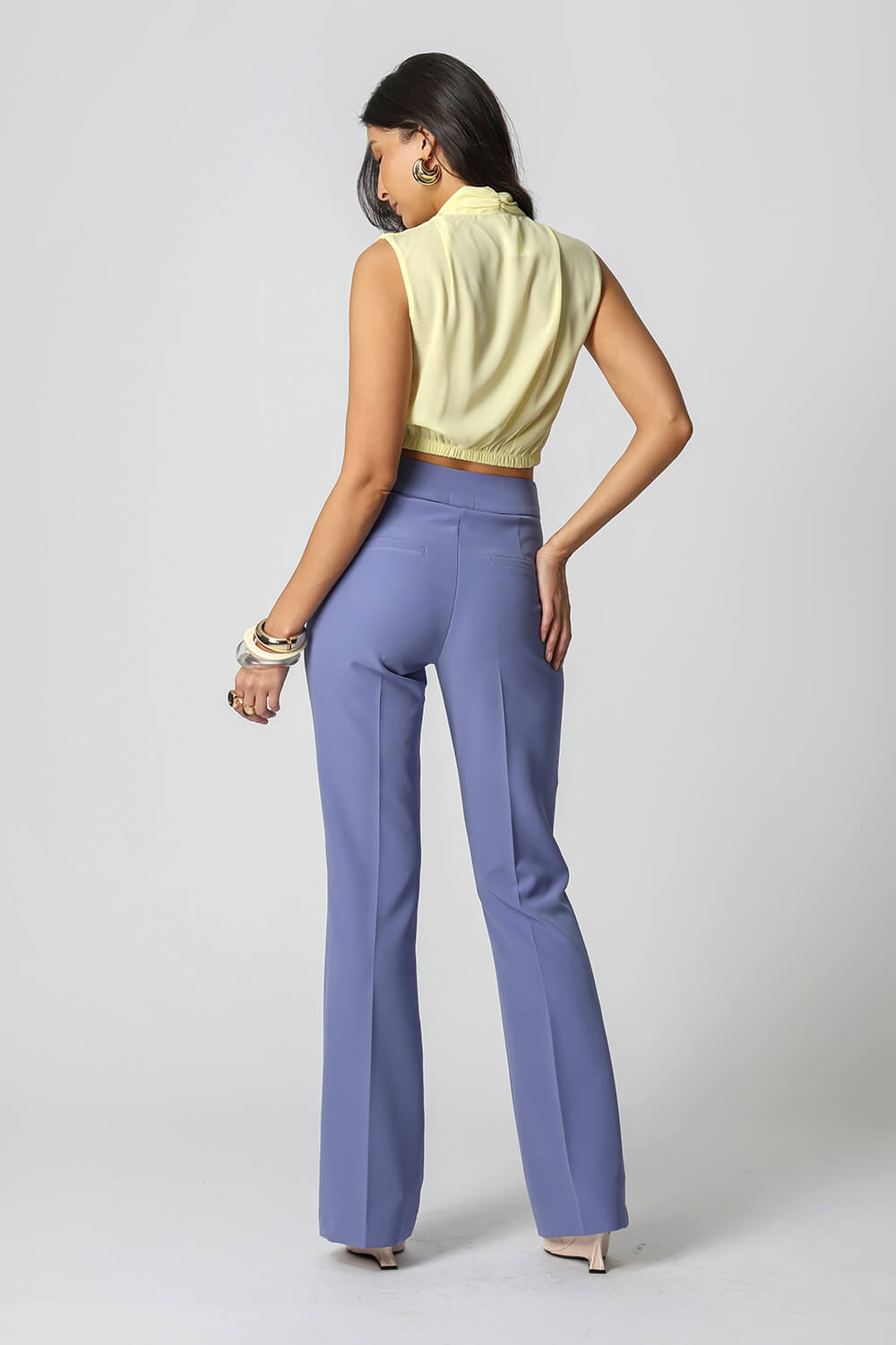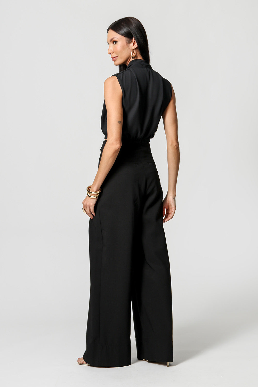 Blusa cropped transpassada e com elástico na barra. Uma peça confeccionada em tecido crepe fluído. Um modelo perfeito para mood work.