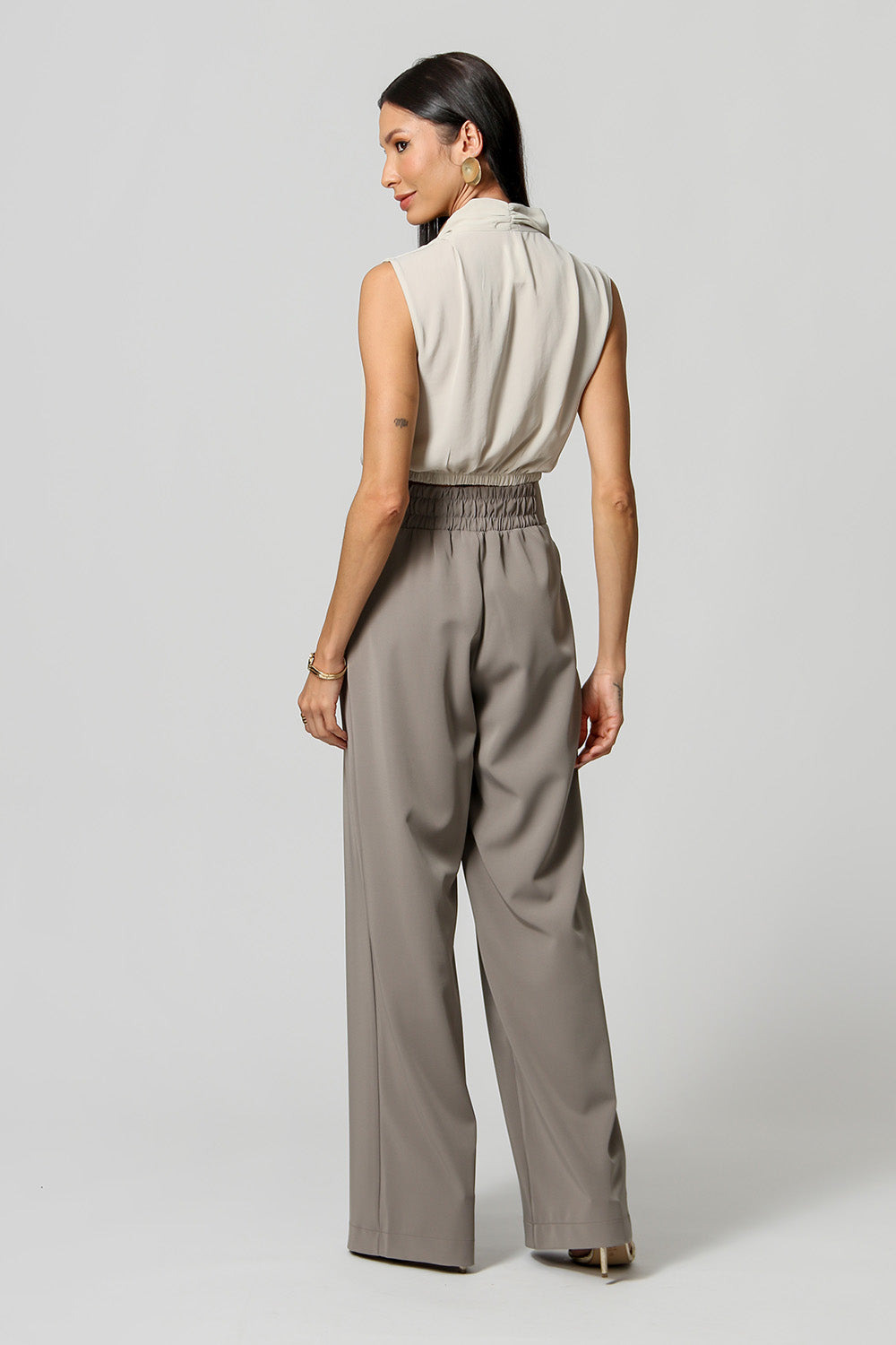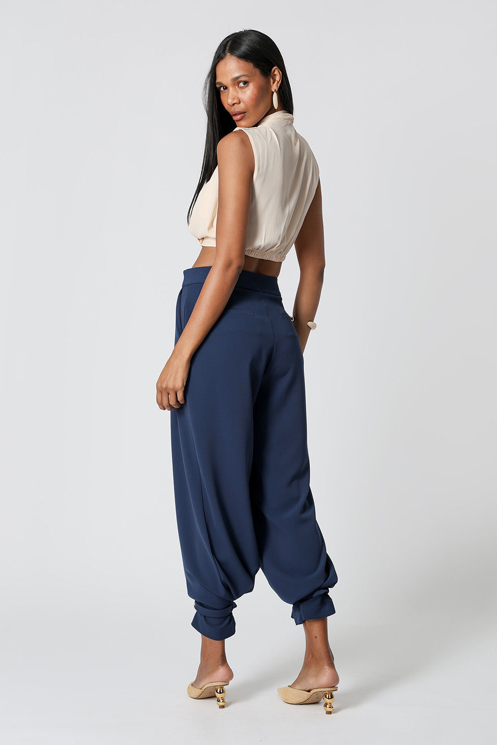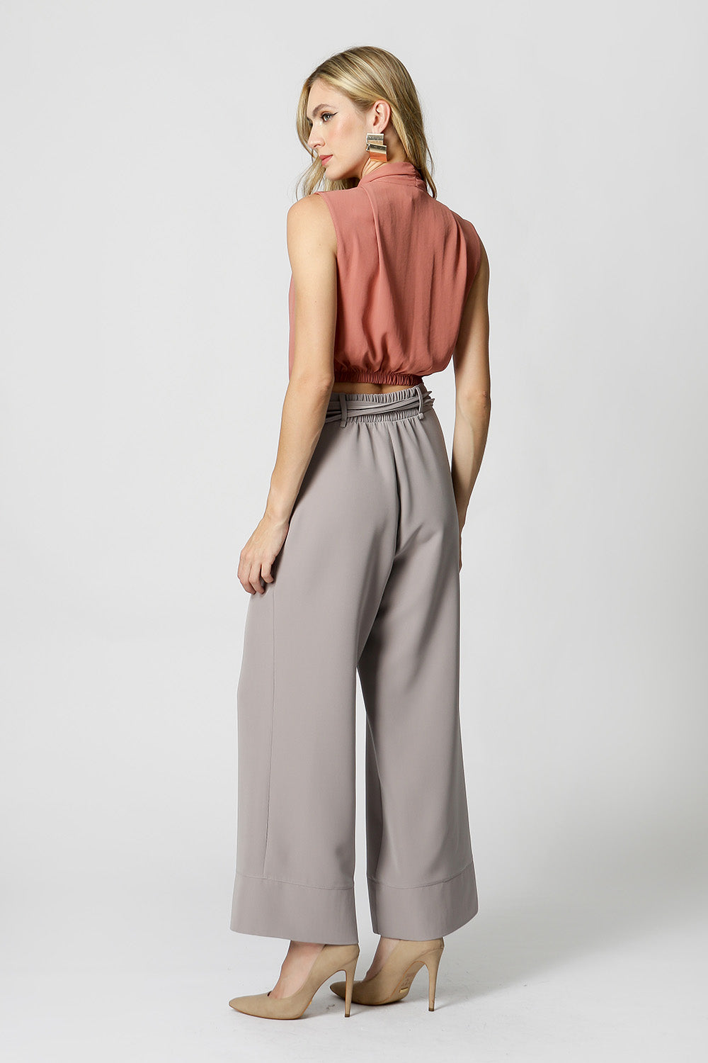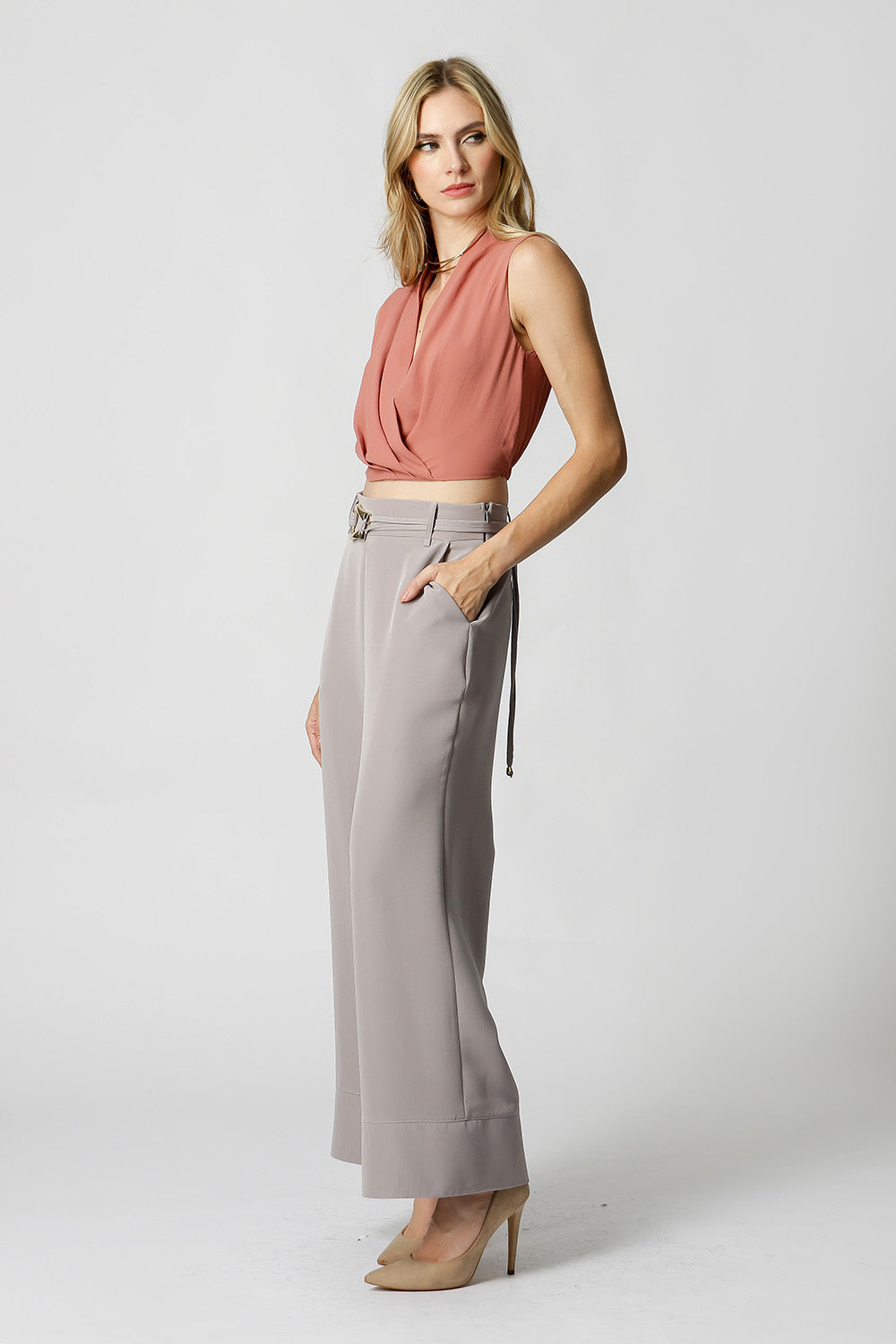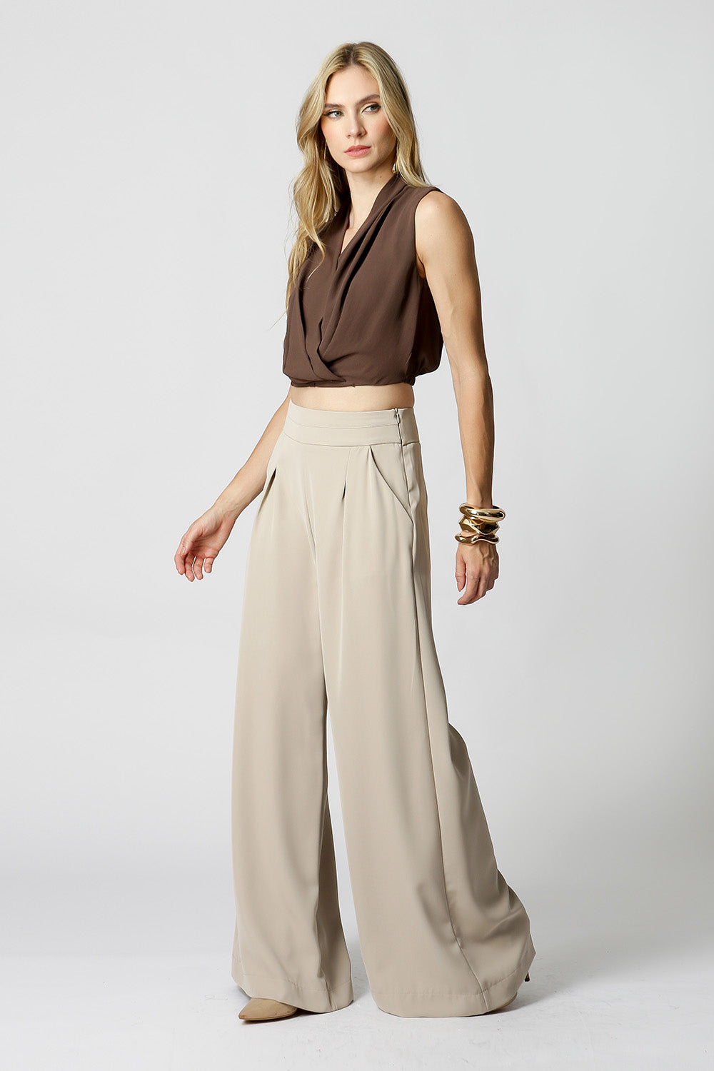 Blusa cropped transpassada e com elástico na barra. Uma peça confeccionada em tecido crepe fluído. Um modelo perfeito para mood work.