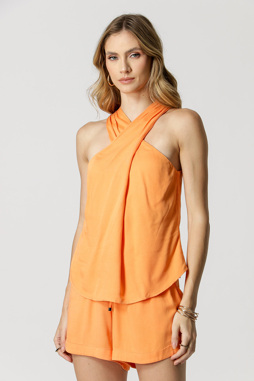 Blusa con escote cruzado y detalles plisados. Pieza confeccionada en tejido Viscosa Fluida. Una pieza ideal para un look de verano.